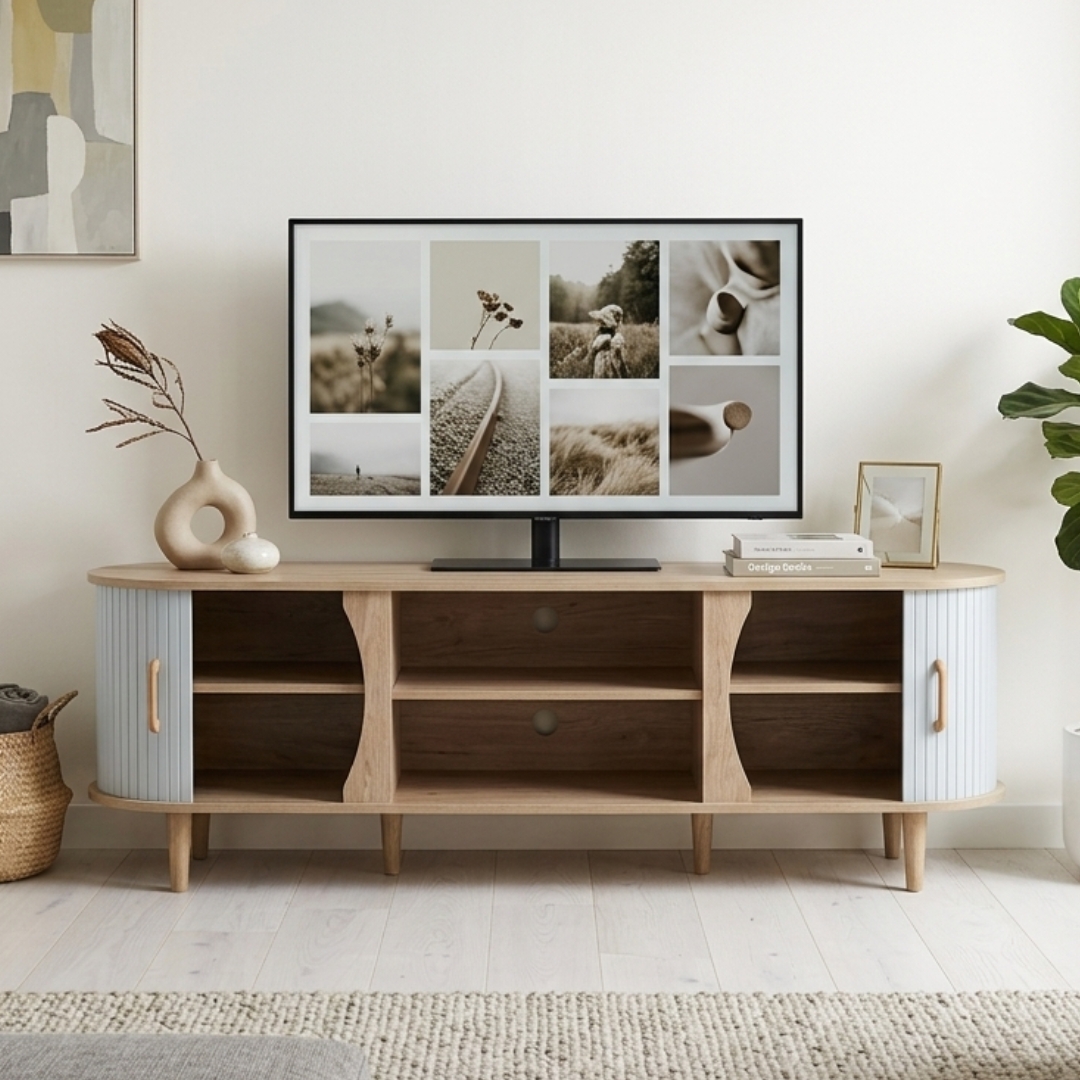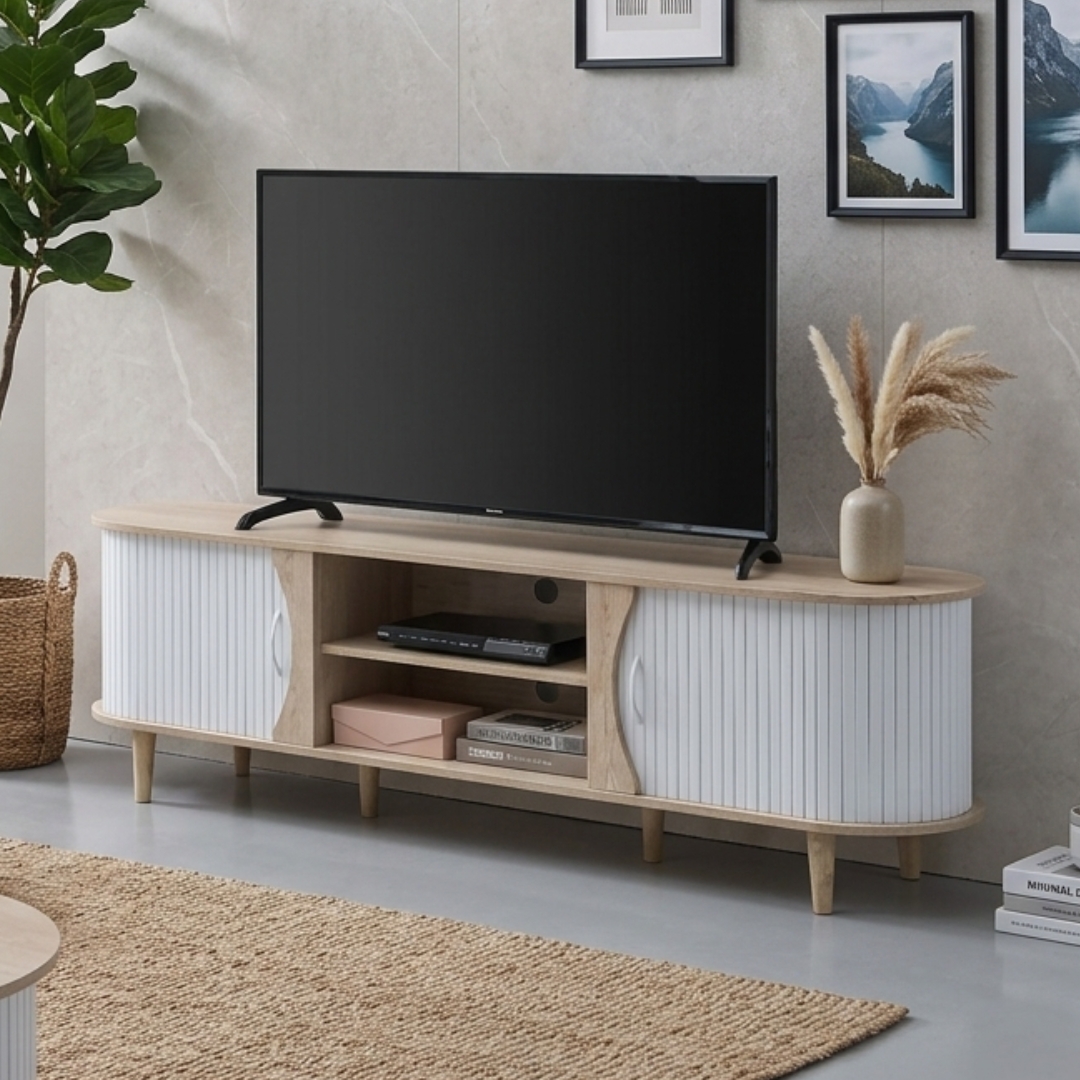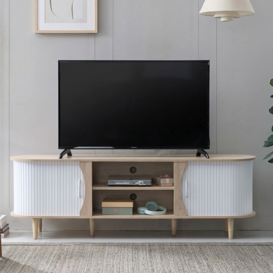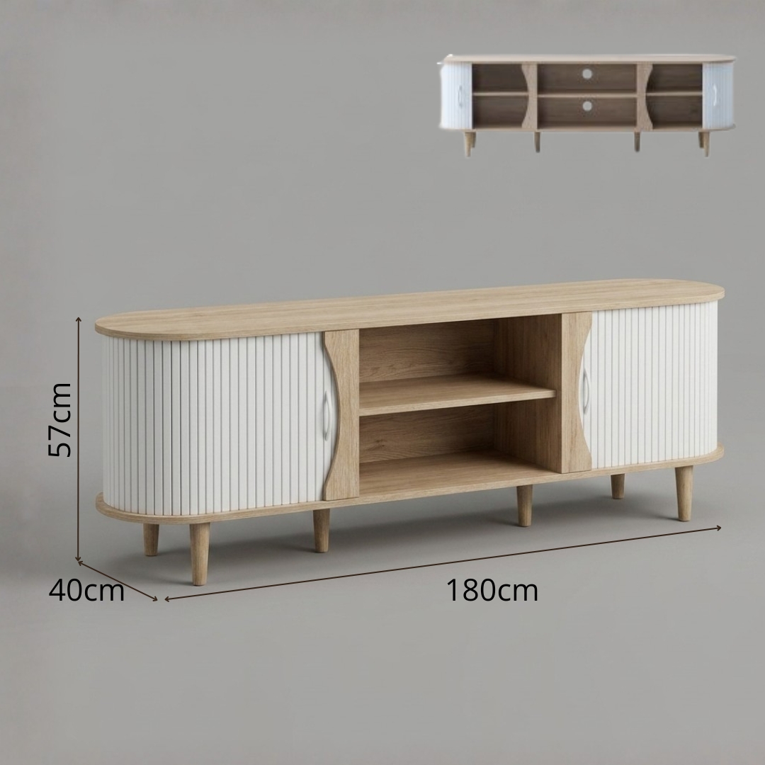 CALMA 180cm Sliding Door TV Cabinet-Oak+White