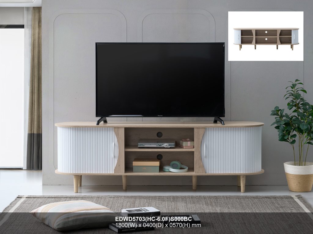 - CALMA 180cm Sliding Door TV Cabinet-Oak+White