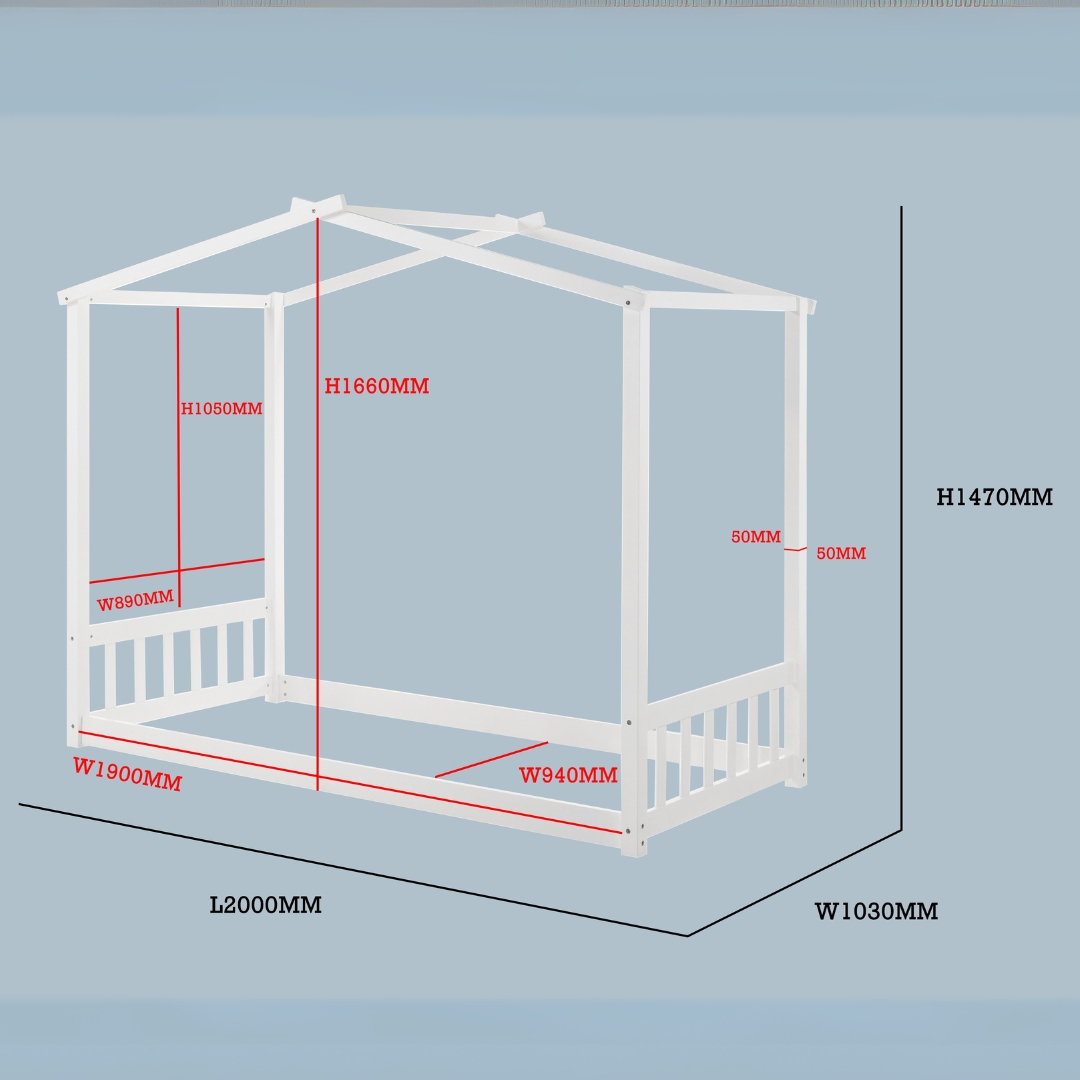 The CLYDE Kids Tent Bed is crafted from solid rubberwood for strength and durability. Designed to fit a Malaysia Standard single mattress, it combines comfort with practicality. Its playful tent-shaped frame sparks imagination, creating a cozy corner for sleep and play. A perfect centerpiece for any child’s bedroom.