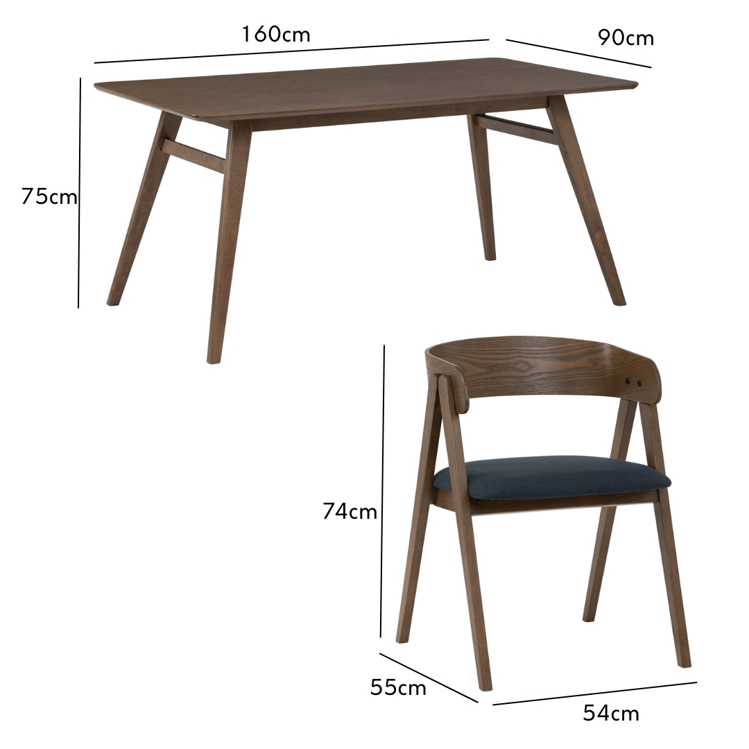 - Table size: L160 x W90 x H75cm
