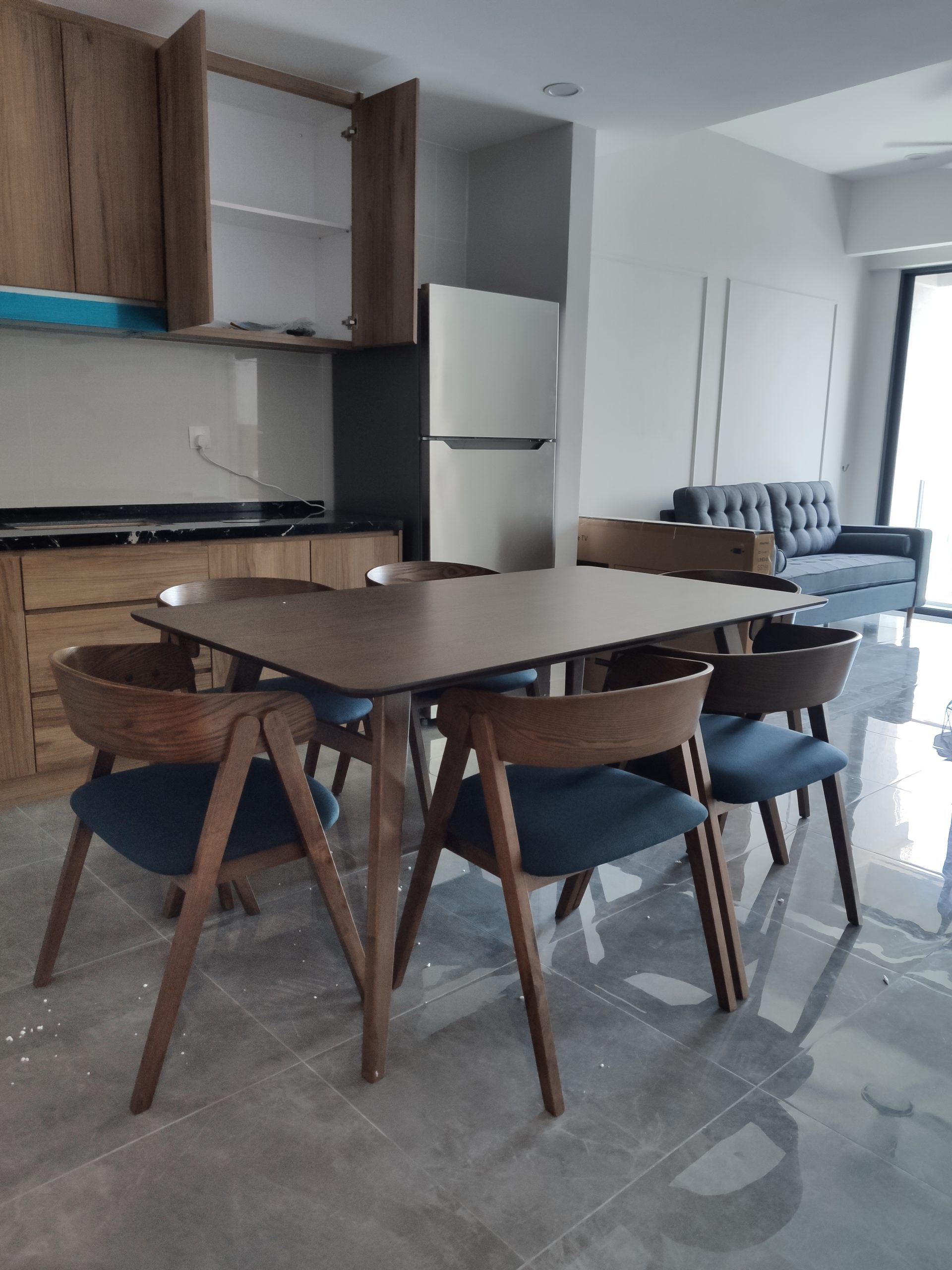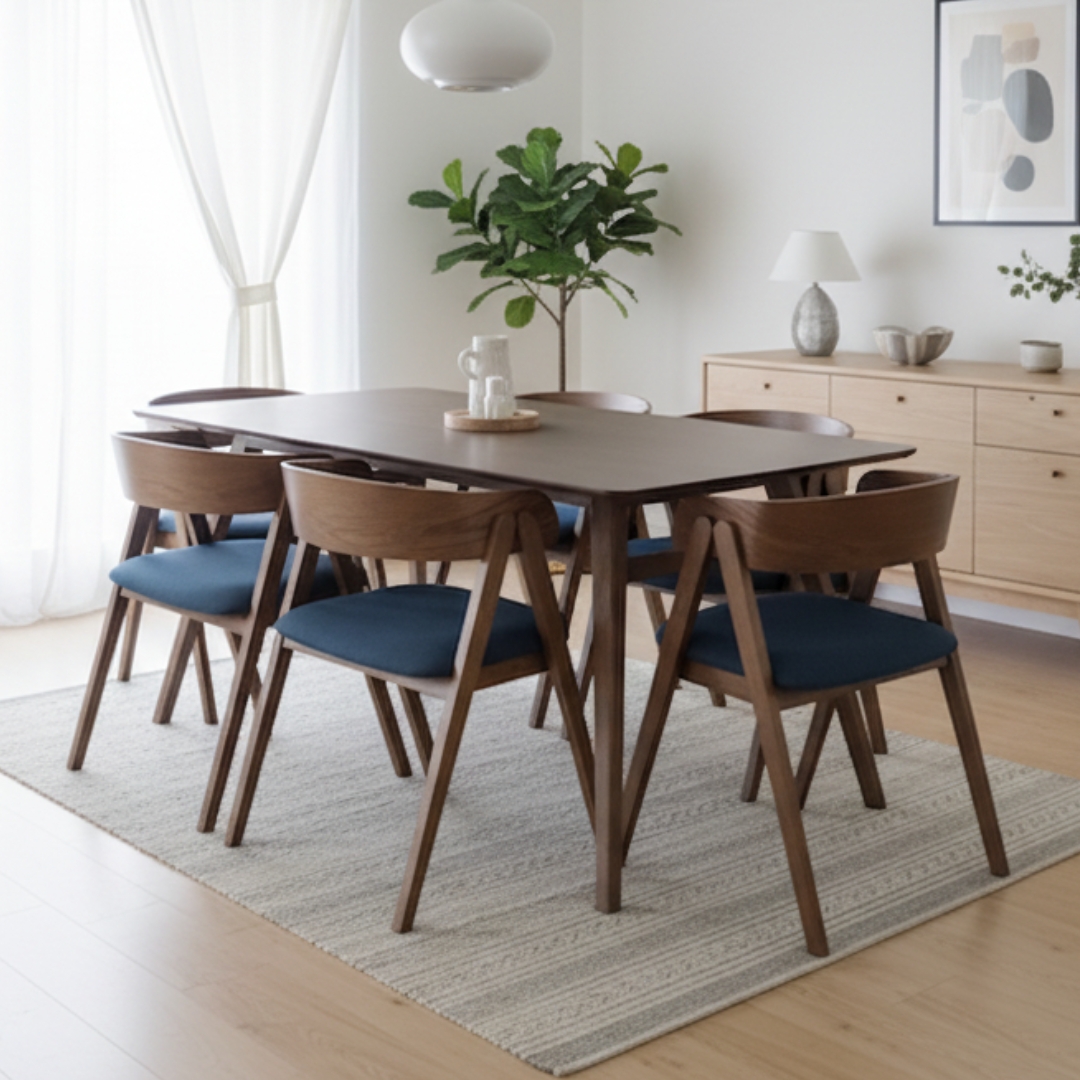 NAMID 6 Seater Dining Set-Cocoa Blue Seat