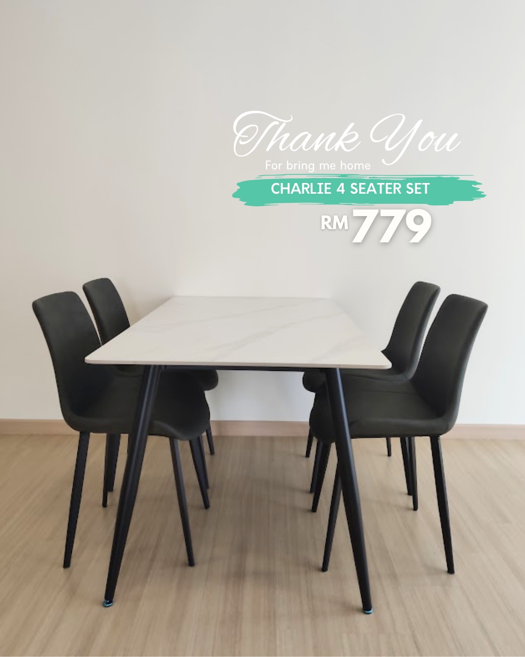 Introducing the CHARLIE Dining Set, available in 4-seater and 6-seater options. Featuring a marble-look sintered stone table top, this elegant set is both waterproof and scratch-resistant, ensuring long-lasting durability and beauty. Perfect for any dining space, the CHARLIE dining set combines modern design with practicality, providing a stylish and functional solution for your home. Enhance your dining experience with the timeless charm of the CHARLIE dining set.
