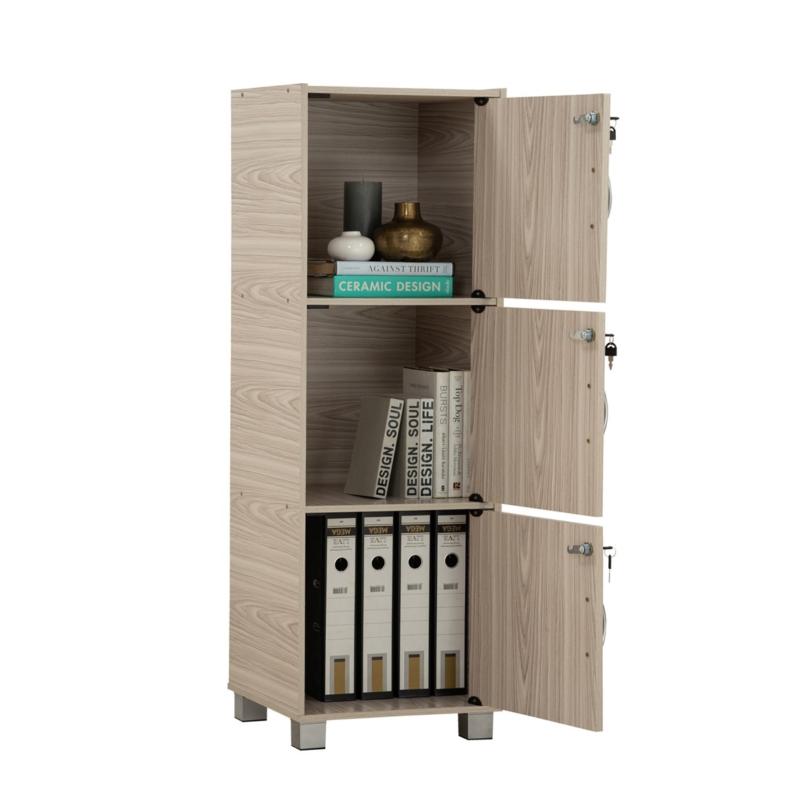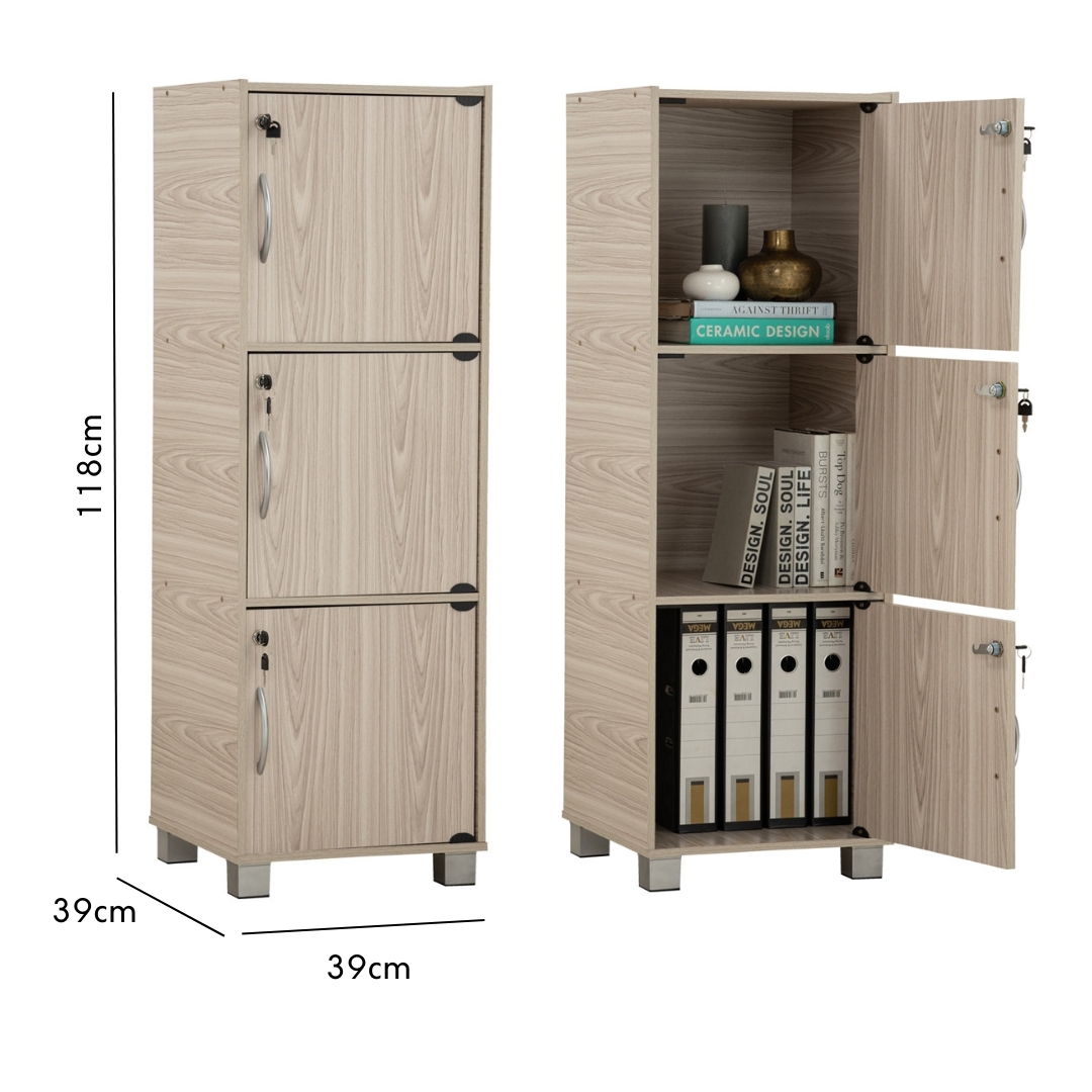 CODEY 3 Door Storage Cabinet With Key Lock-Grey Line