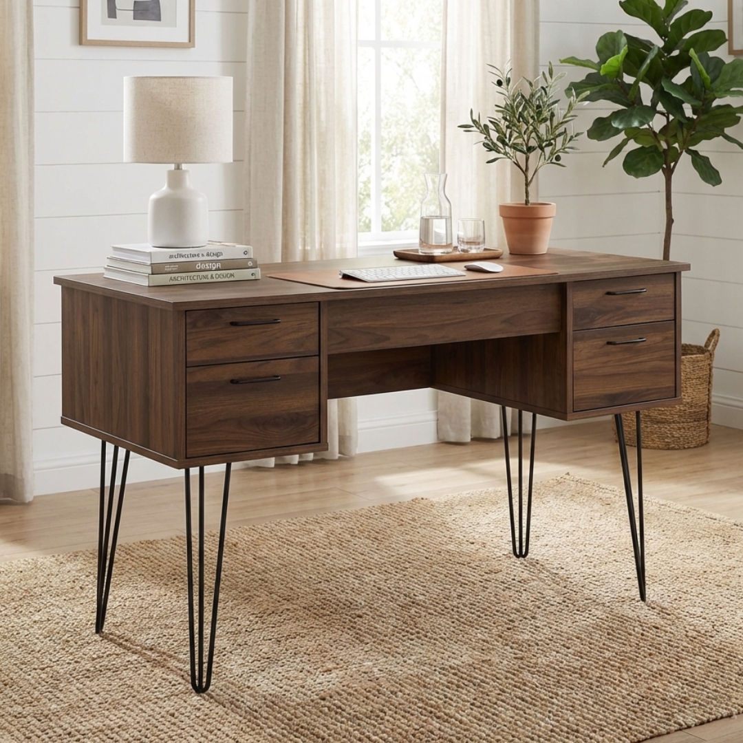 ECO 120CM 3 Drawers Writing Desk With Key Lock-Cappucino