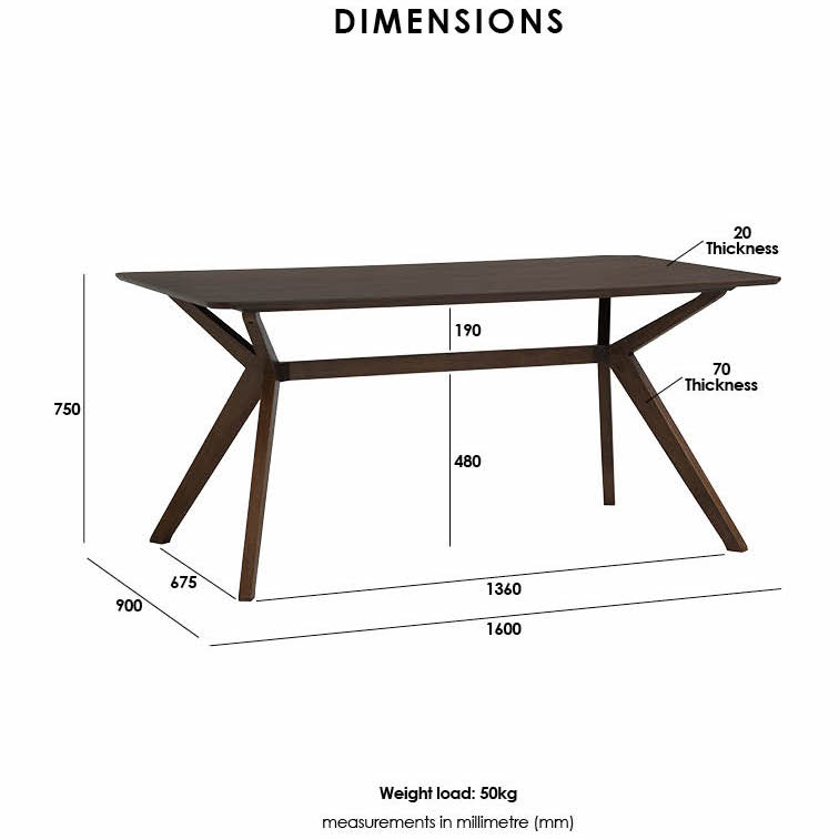 COPPER 160x90cm Dining Table-Cocoa