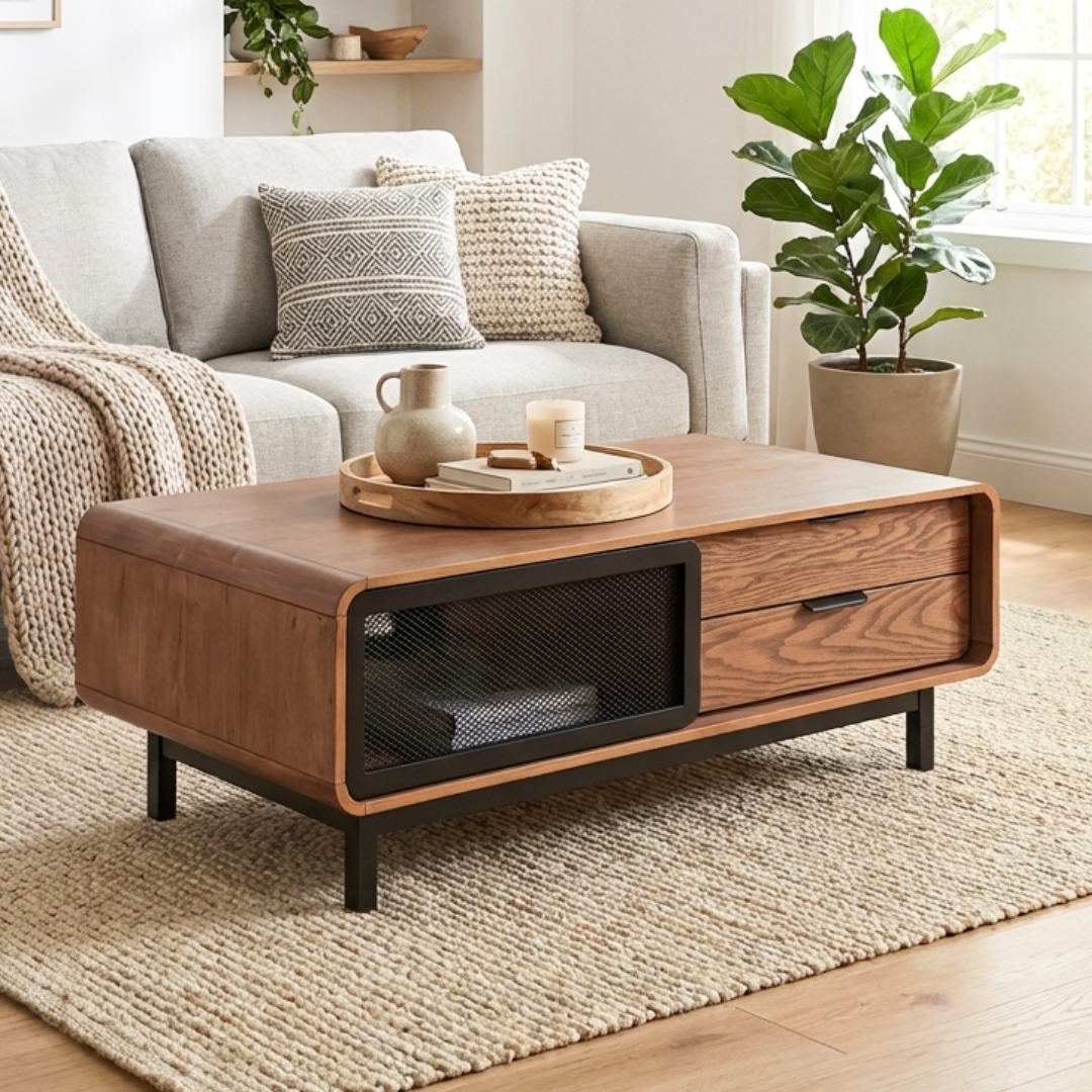 ZIPPO 100x60CM Full Solid Wood Coffee Table-Walnut