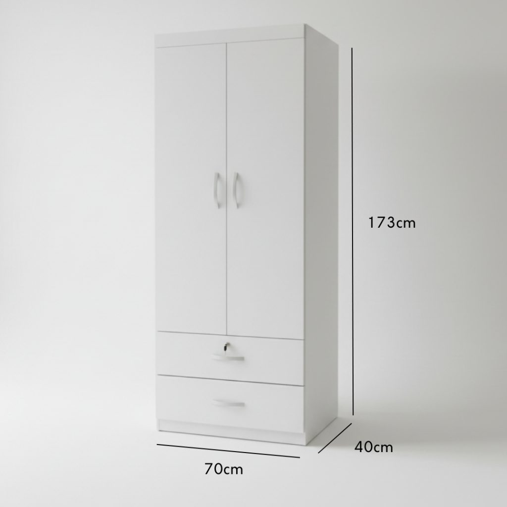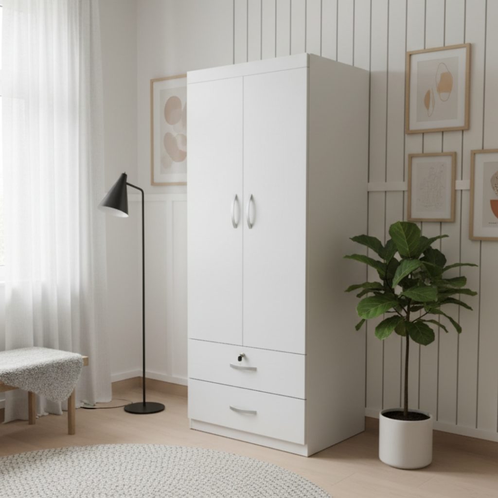 - LIBERTY 2 Door 2 Drawer Wardrobe with key lock – Full white
