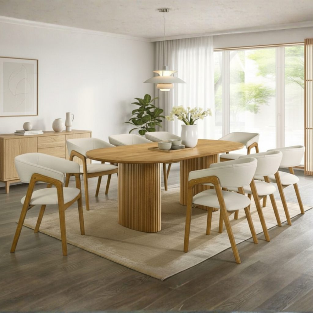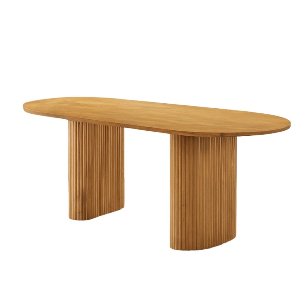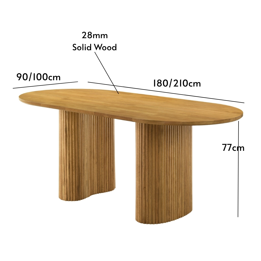 The COSCO Solid Wood Dining Table blends soft curves with timeless craftsmanship. Its oval-shaped, 28mm thick tabletop is made from full solid rubberwood for durability and elegance. The slatted table base offers both stability and an airy, stylish look. Available in rich Walnut or light Beech, COSCO brings a natural, Japanese-inspired warmth to any dining space.