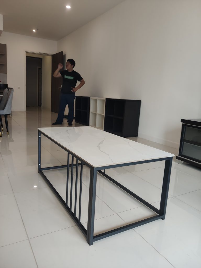 JTB-12 Artificial Marble Coffee Table With Rose Gold Chrome Legs