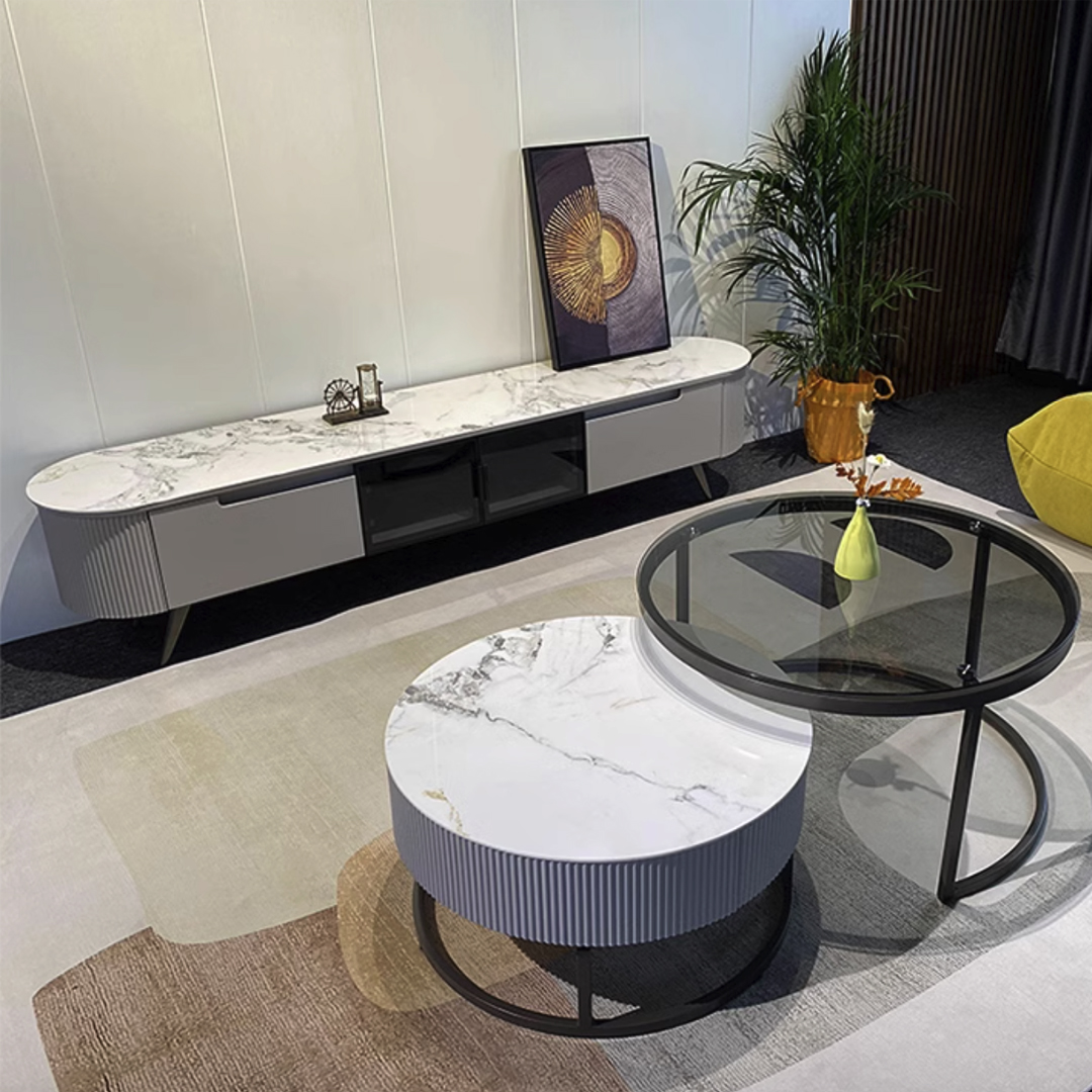 90205 Space Saver Ceramic Top Coffee Table Set-Grey