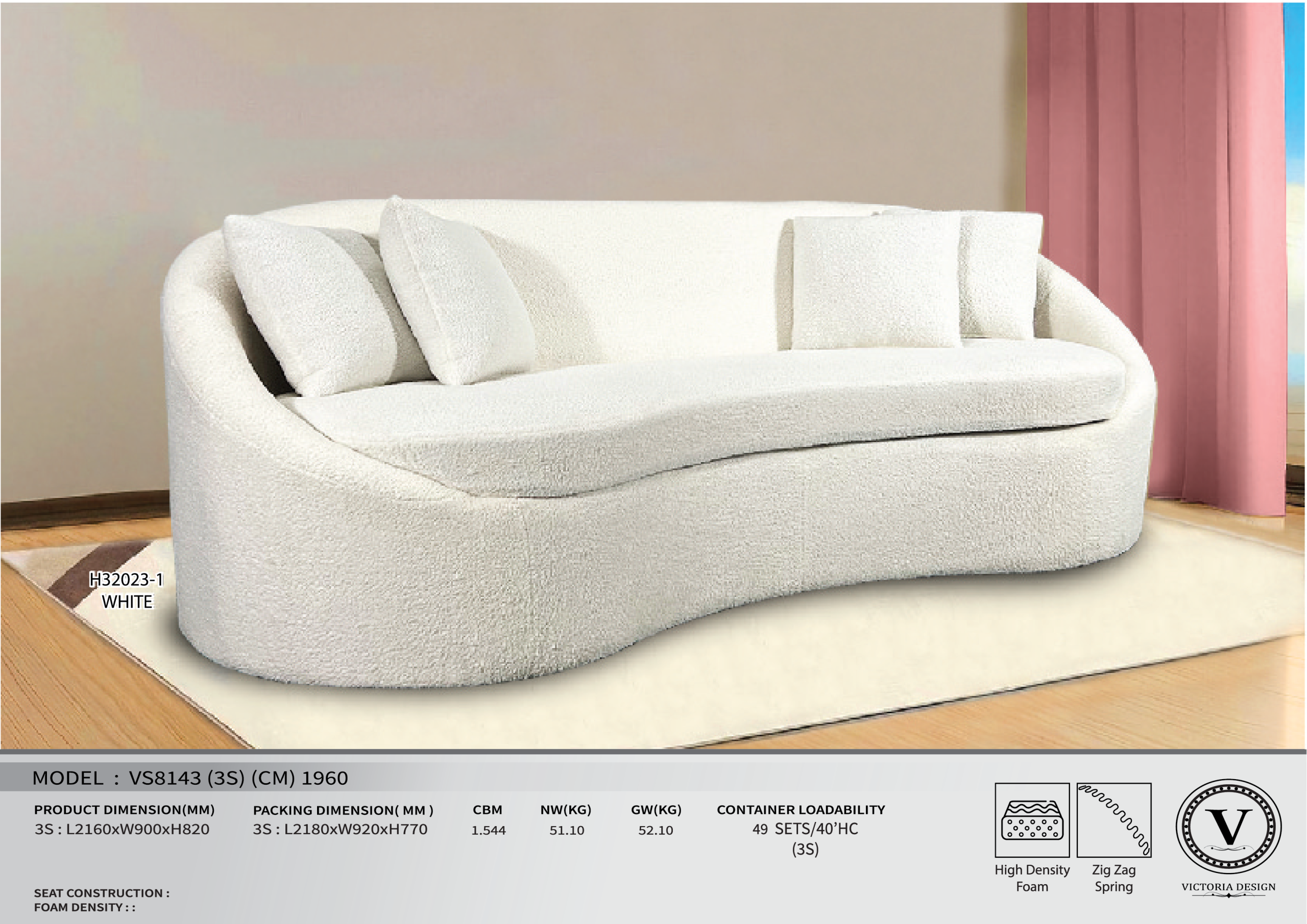 [Custom Made] ADALIND 3 Seater Curved Shaped Sofa