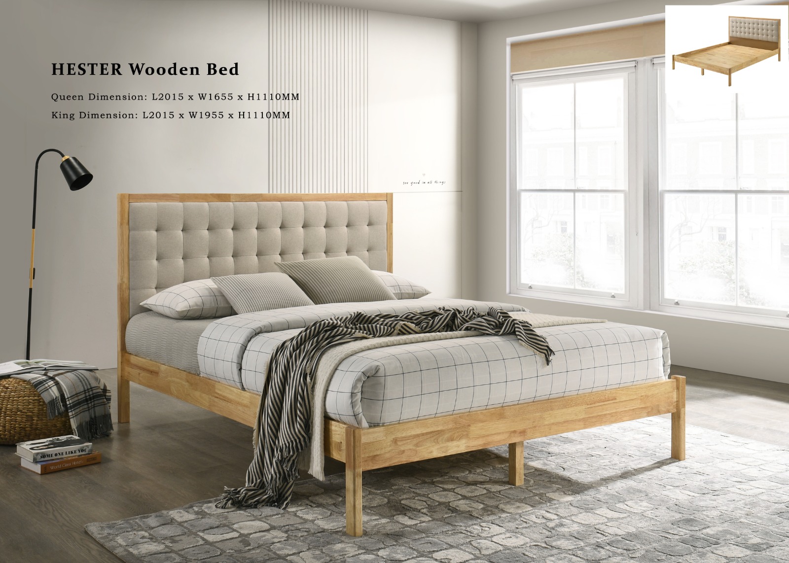 Alami keselesaan rekaan khas dengan Rangka Katil Kayu Solid HIROSHIMA. Diperbuat daripada kayu getah solid berkualiti tinggi, rangka katil ini mempunyai papan dasar katil penuh (full panel) untuk sokongan tilam yang maksimum dan ketahanan jangka panjang. Keistimewaannya terletak pada penyandar kepala (headboard) berkusyen yang boleh ditempah khas dalam pelbagai pilihan warna dan jenis fabrik mengikut citarasa anda. Rangka kayu ini tersedia dalam dua warna klasik: Natural dan Walnut. HIROSHIMA menggabungkan keindahan kayu asli dengan keselesaan yang boleh diubah suai untuk bilik tidur impian anda.