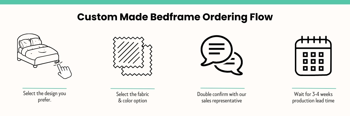 - Taylor made with selected fabric option above on headboard only