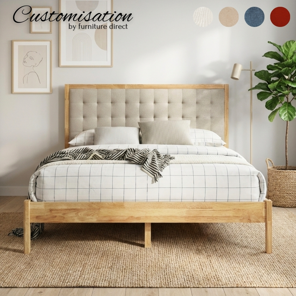 Experience tailor-made comfort with the HIROSHIMA Solid Wood Bedframe. Crafted from premium solid rubberwood, this bedframe features a full panel bed base for maximum mattress support and long-term durability. What makes it unique is the tailor-made cushion headboard, which can be customized in various colors and fabric types to match your personal style perfectly. The wood frame itself is available in two timeless finishes: Natural and Walnut. Whether you prefer a minimalist look or a cozy upholstered feel, the HIROSHIMA offers the best of both worlds—natural wood beauty and personalized comfort.