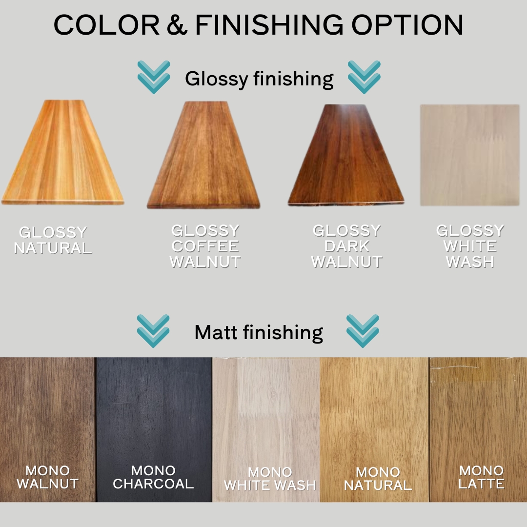 - Default material in Solid Rubberwood or Acacia Wood