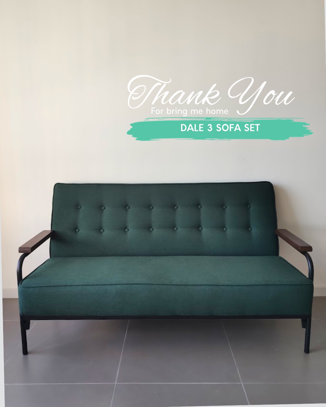 DALE 3 Seater Retro Sofa-Green