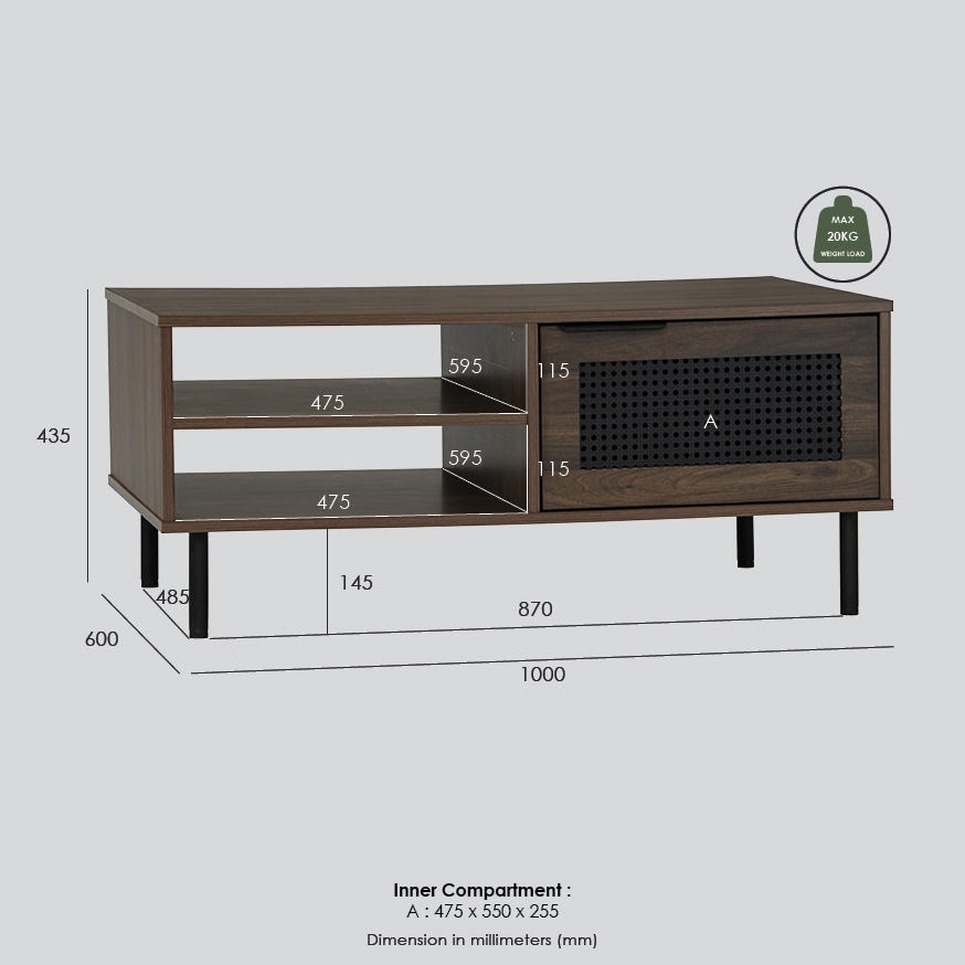 Tingkatkan gaya ruang tamu anda dengan perabot DALLAS. Dibina dengan papan partikel tahan lama dan kaki logam bergaya, ia menampilkan panel pintu sintetik dengan lubang pengudaraan moden untuk aliran udara yang lebih baik dan penampilan menarik. Sesuai untuk rumah kontemporari.