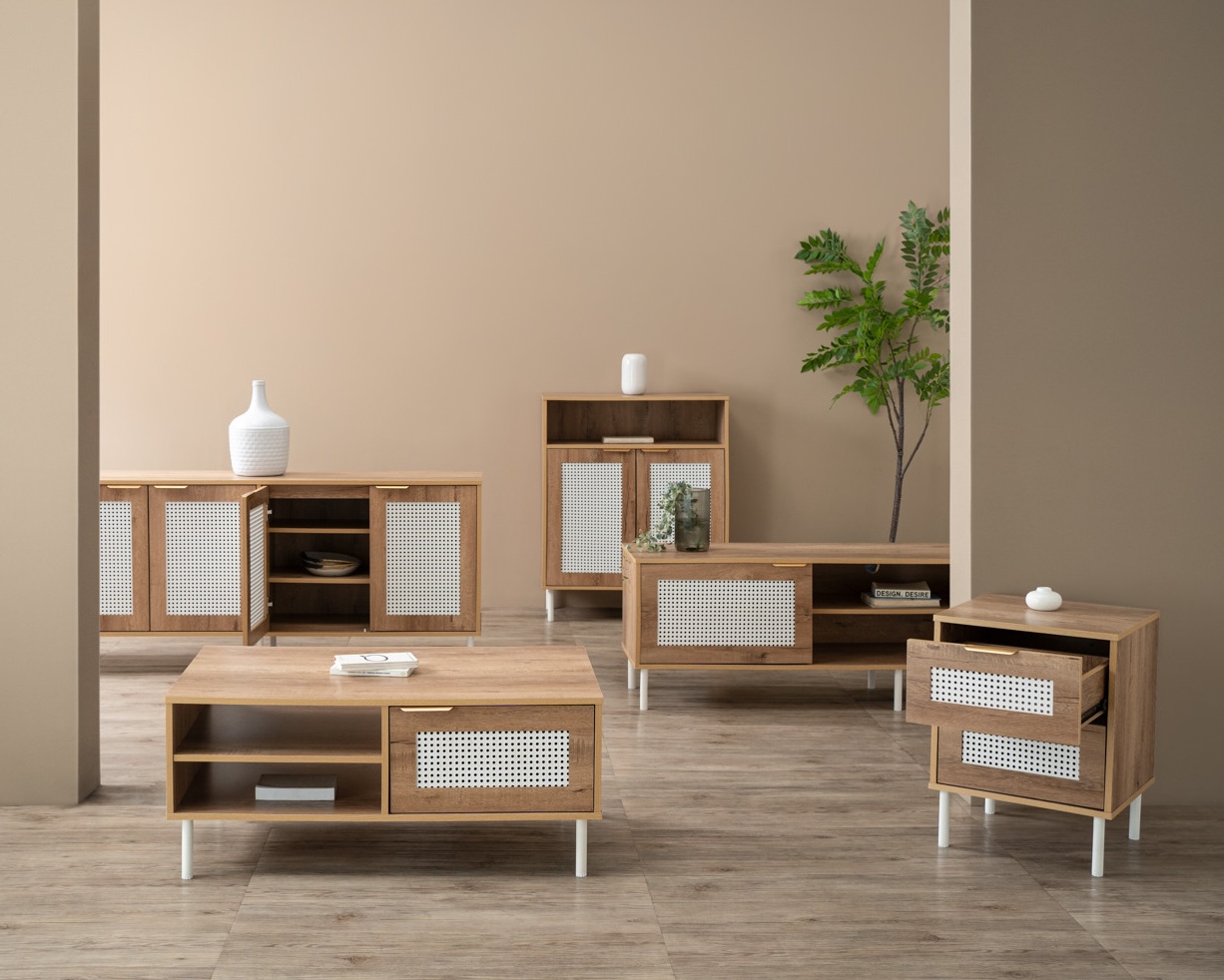 提升您的客厅风格,选择 DALLAS 客厅家具。采用坚固的颗粒板主体和时尚金属腿设计,兼具美观与耐用性。合成门板配有通风孔,增强空气流通同时提升美感,适合现代家居环境。