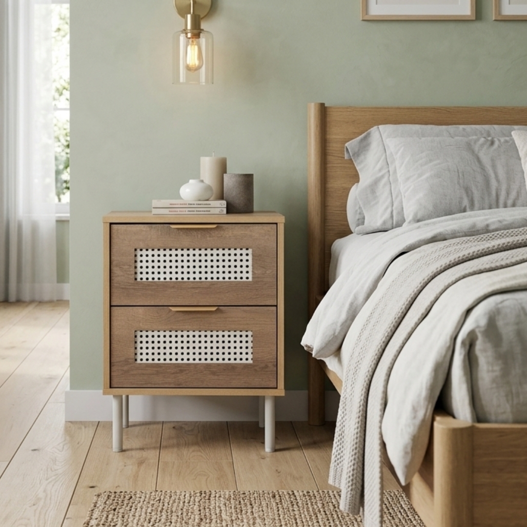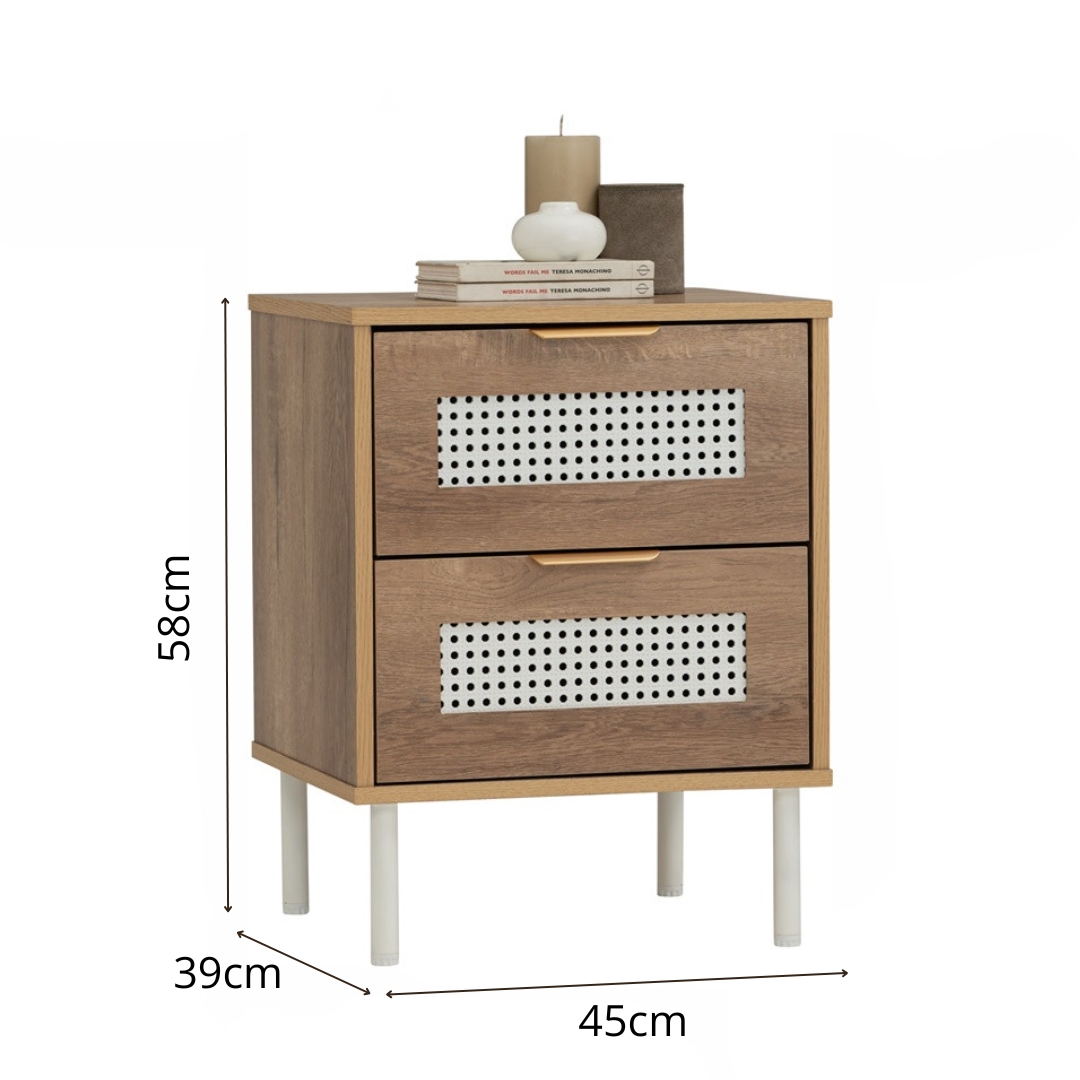 DALLAS 2 Drawers Bedside Table-Wotan Oak
