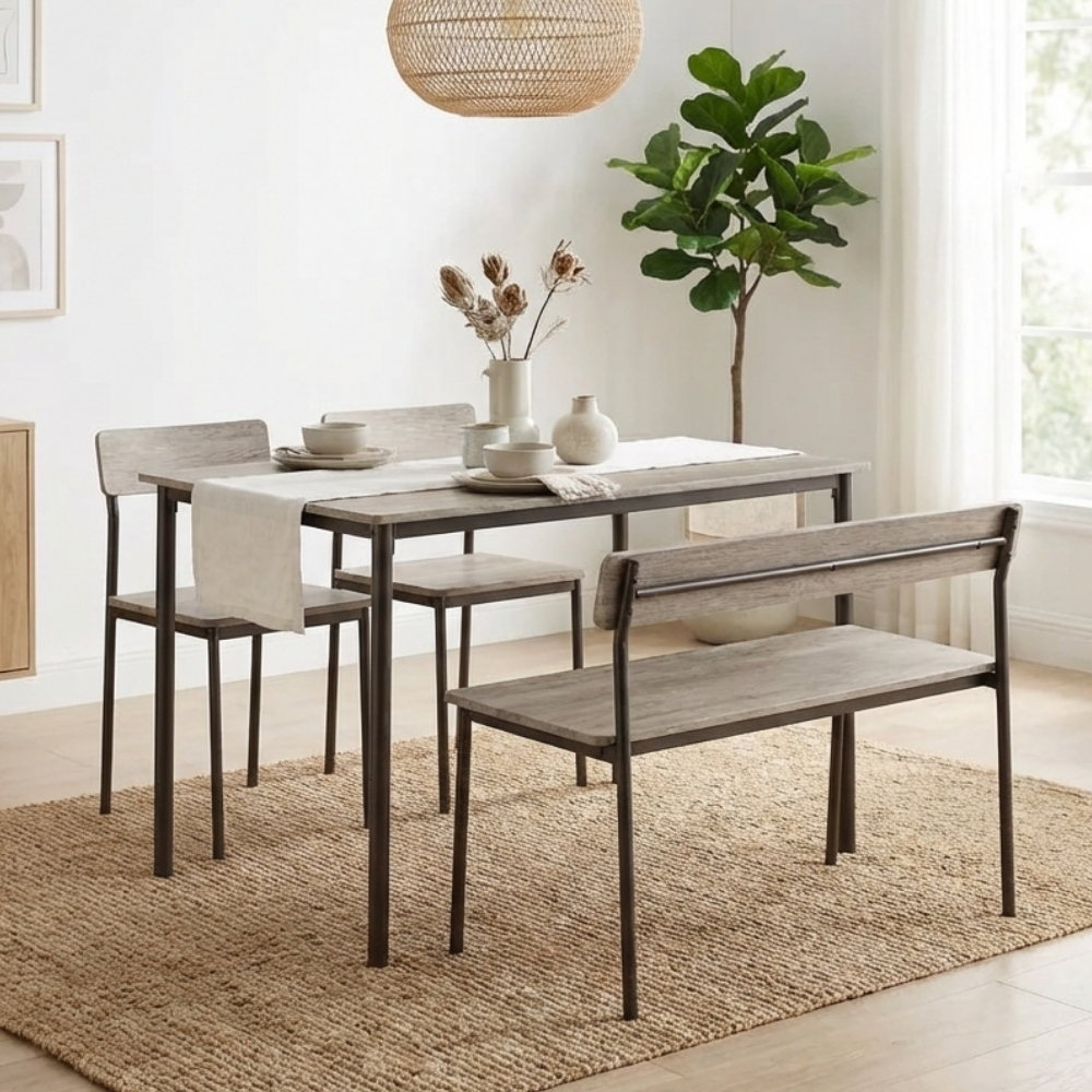 KEN Solid Rubberwood 6 Seater Dining Set With Bench-Walnut