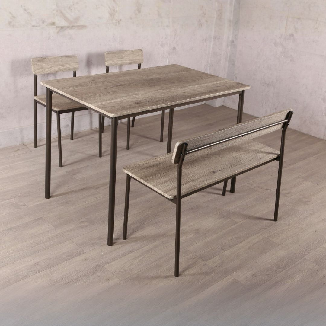KEN Solid Rubberwood 6 Seater Dining Set With Bench-Walnut