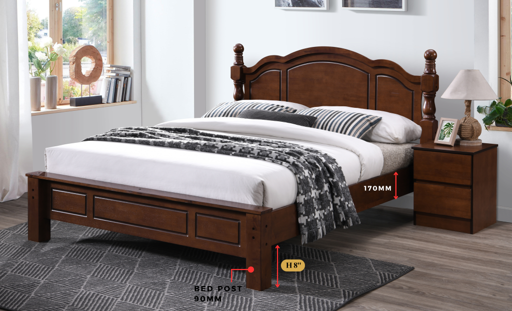 THOMAS Queen Size Wooden Bed Frame-Walnut
