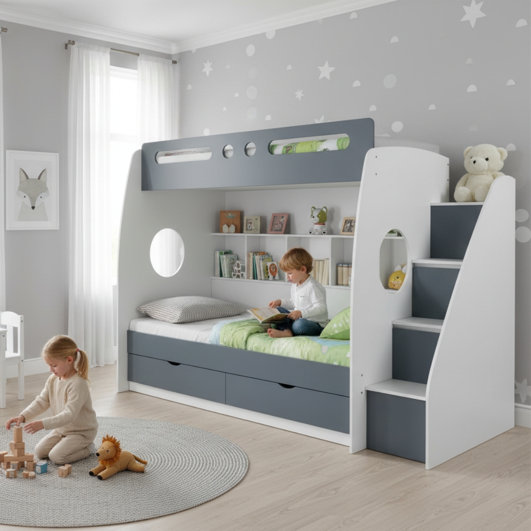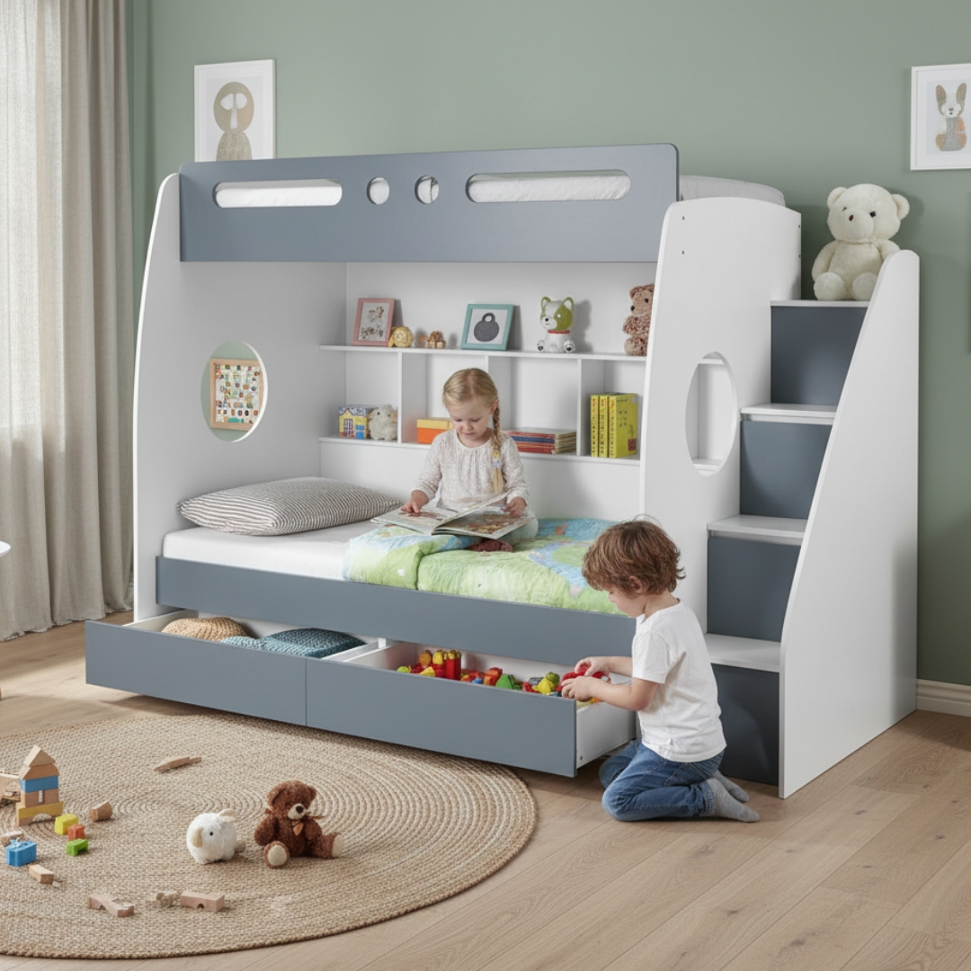 DOMINO Ladder Bunk Bed With Drawers Storage-Grey