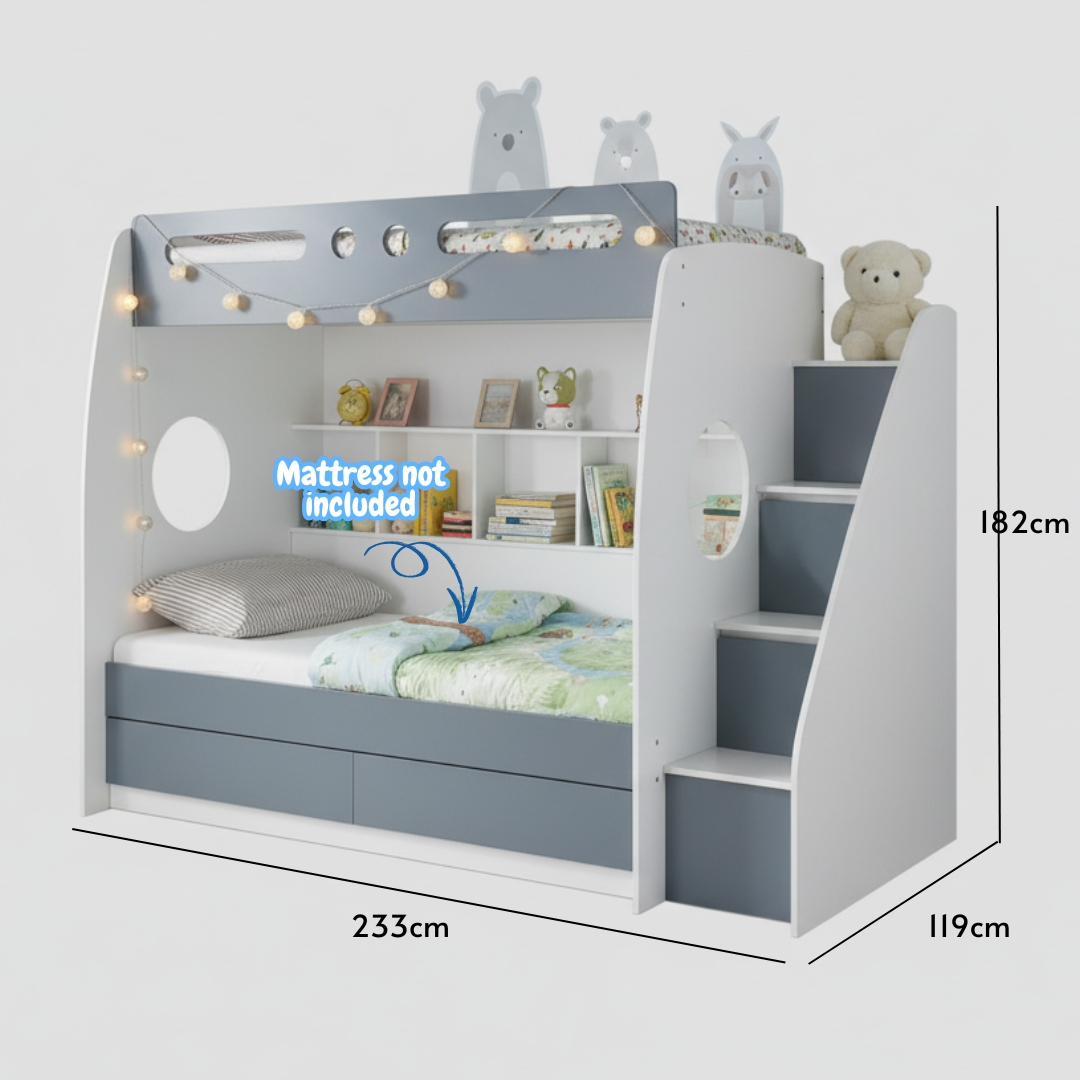 OREO Ladder Bunk Bed With Drawers Storage-Grey