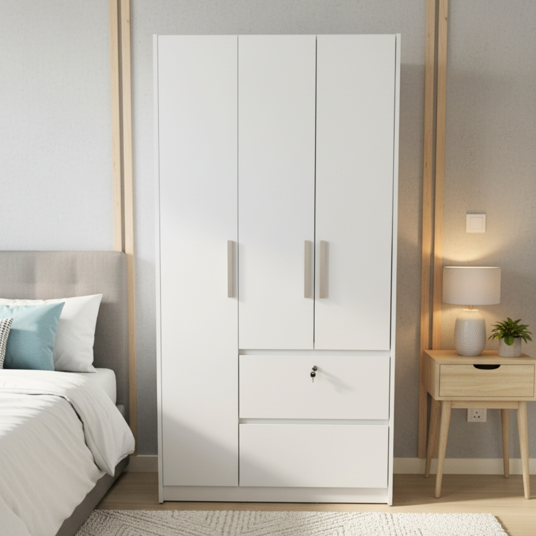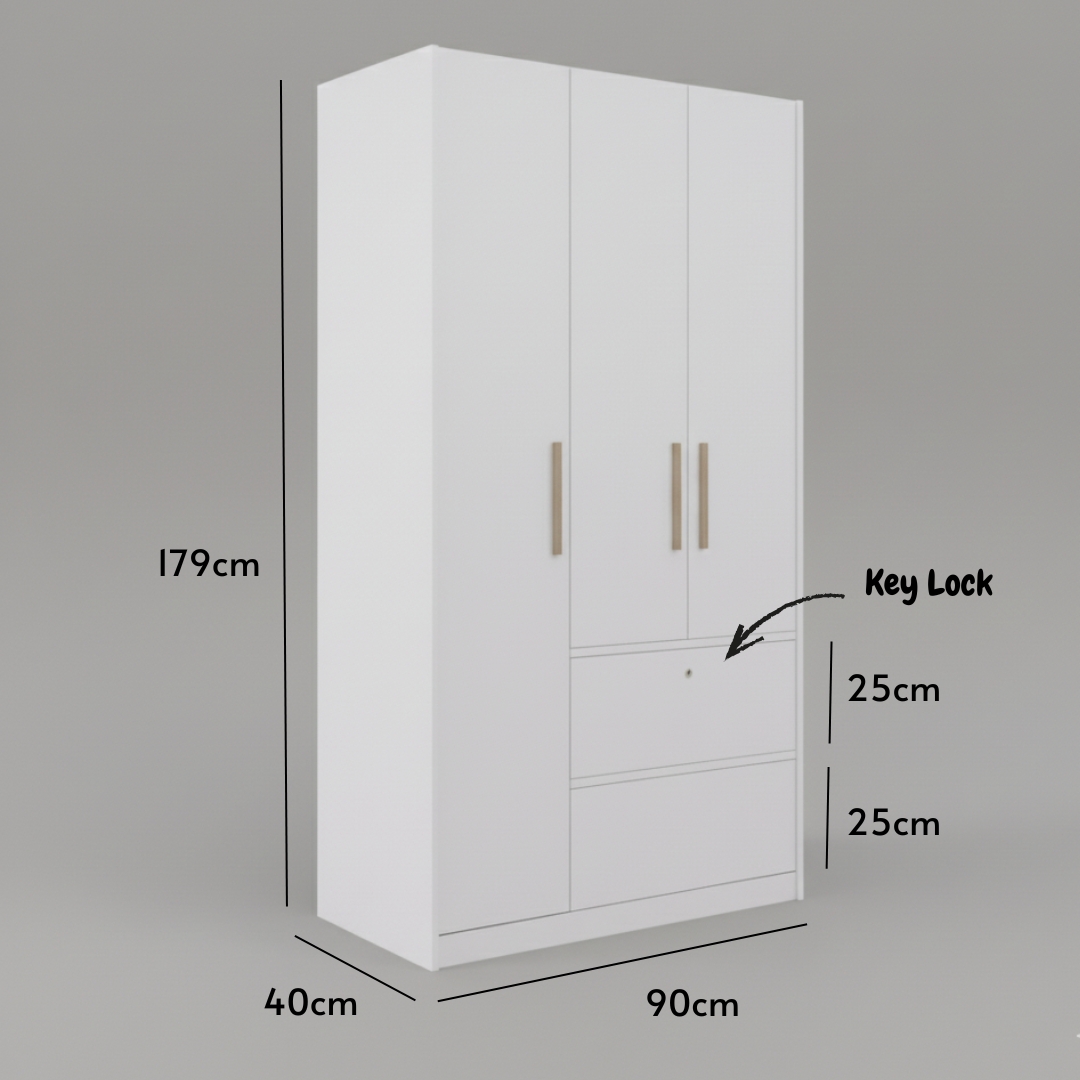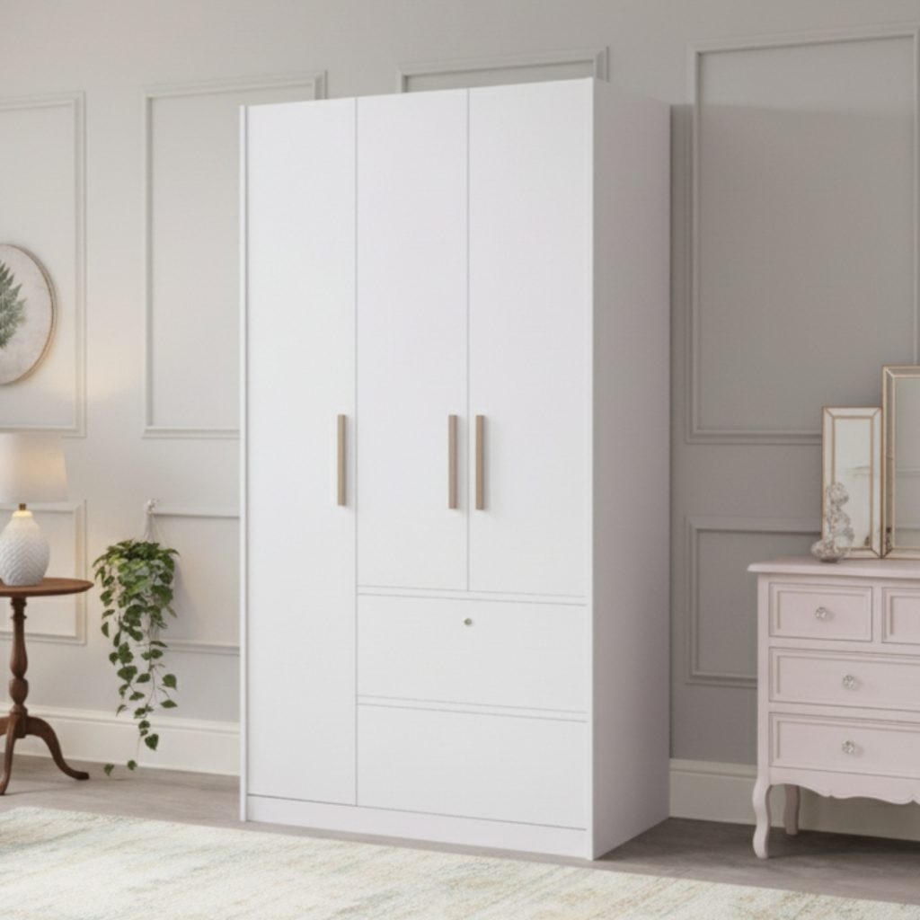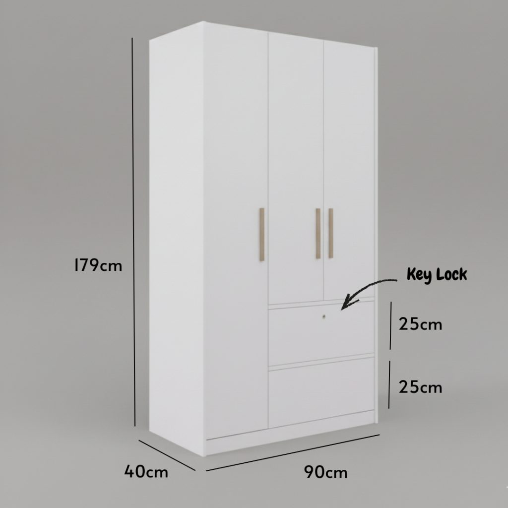 DOREEN 3 Door 2 Drawer With Key Lock Wardrobe-White