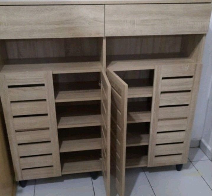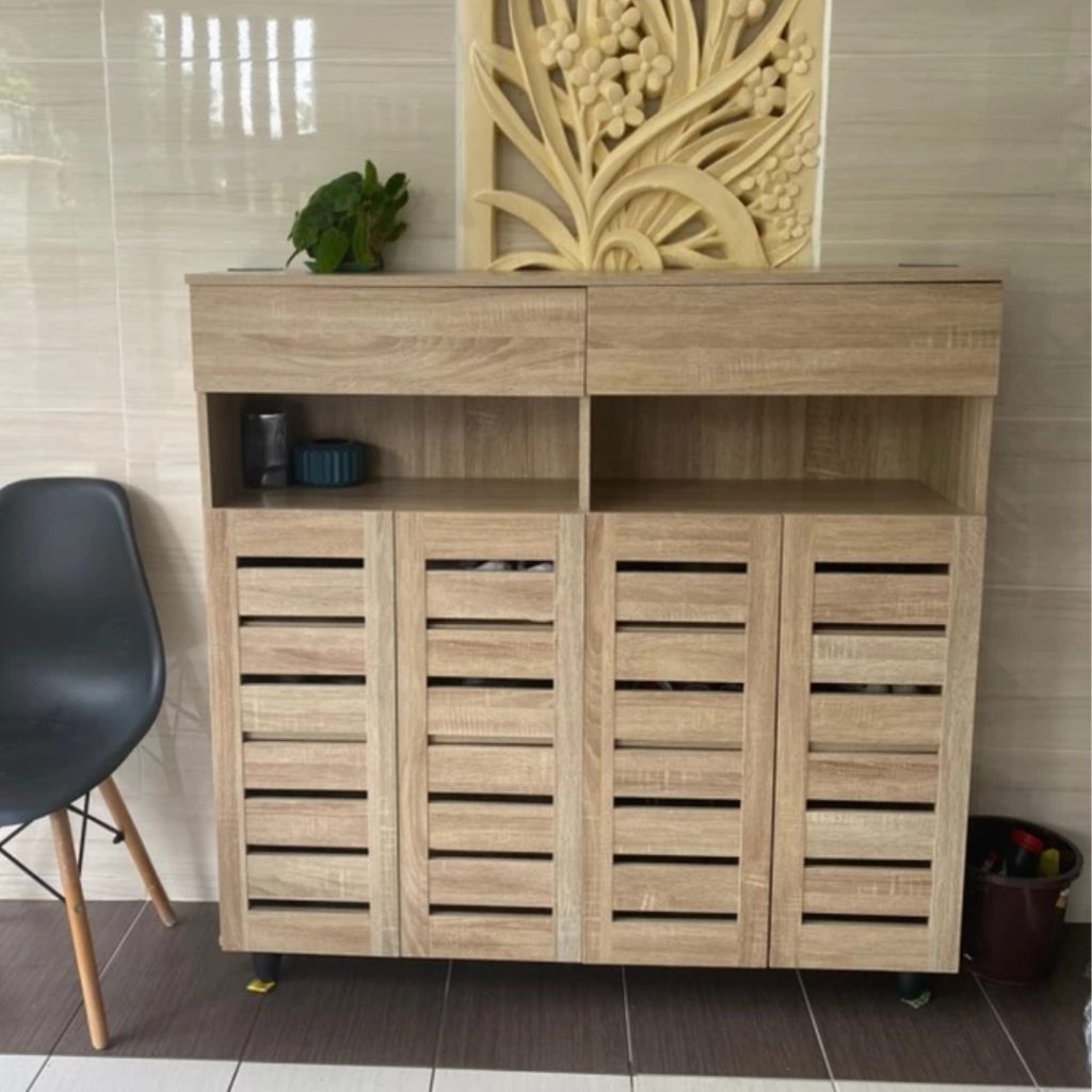 ENYA 4 Door Shoe Cabinet-Oak+White