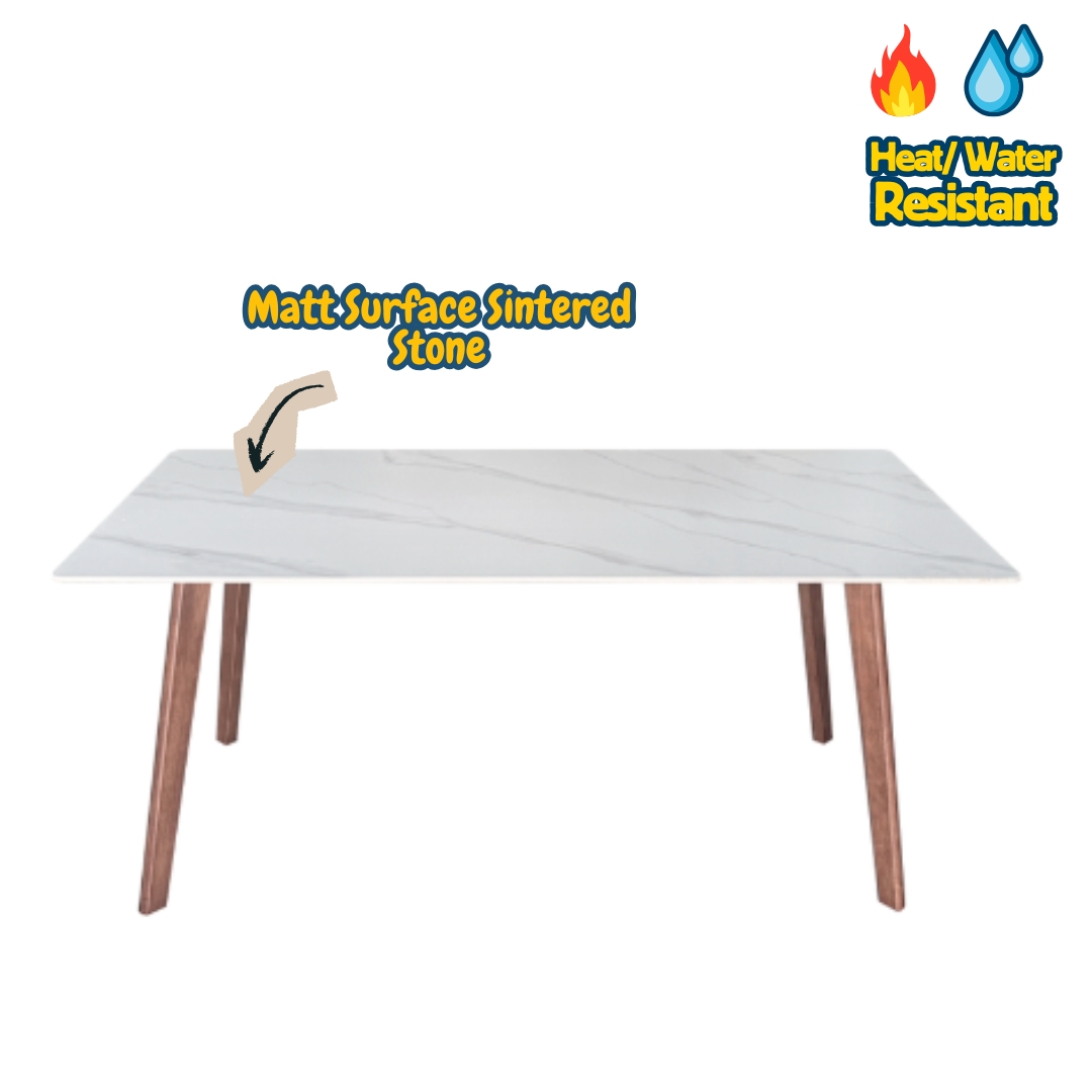 - Matt Surface Sintered stone with solid wood legs
