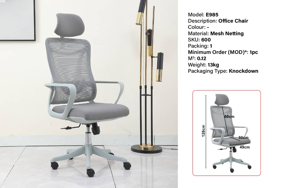 - E985 Mesh Netting High Back Office Chair-Grey