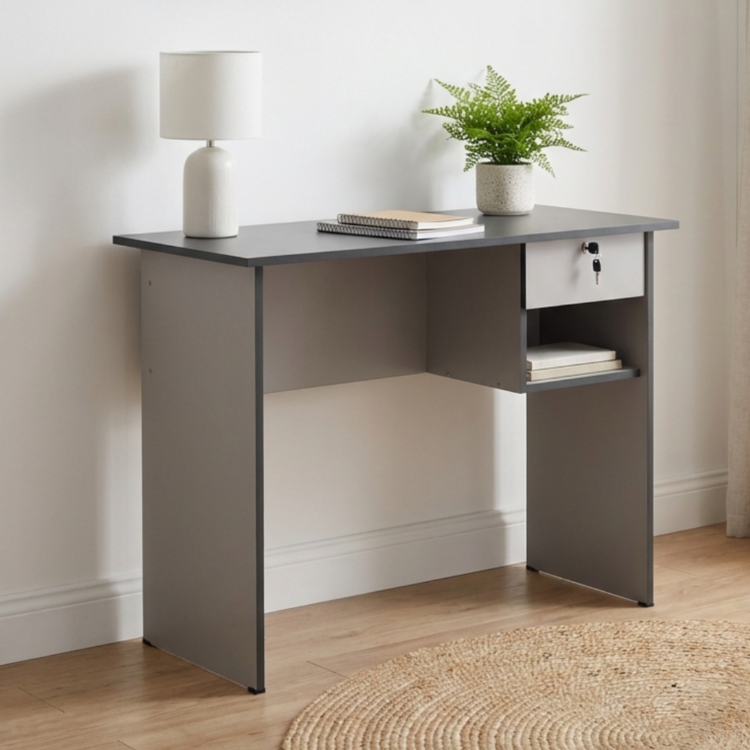 ECO 90CM Writing Desk With Key Lock-Grey