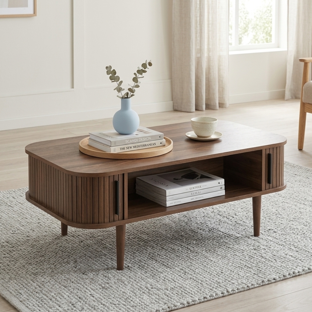 - MALMU 110cm Sliding Door Coffee Table-Walnut