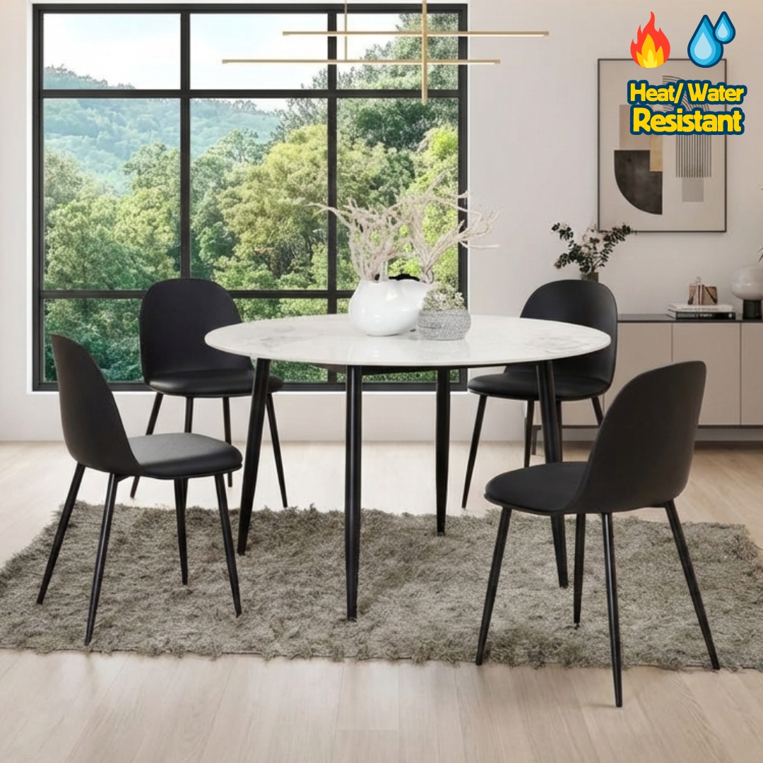 - BLOOM 4 Seater Sintered Stone Round Dining Set
