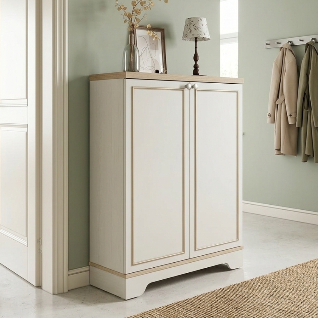 - REGENT 2 Door Shoe Cabinet-Oak+Ivory