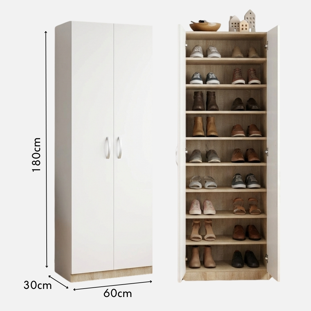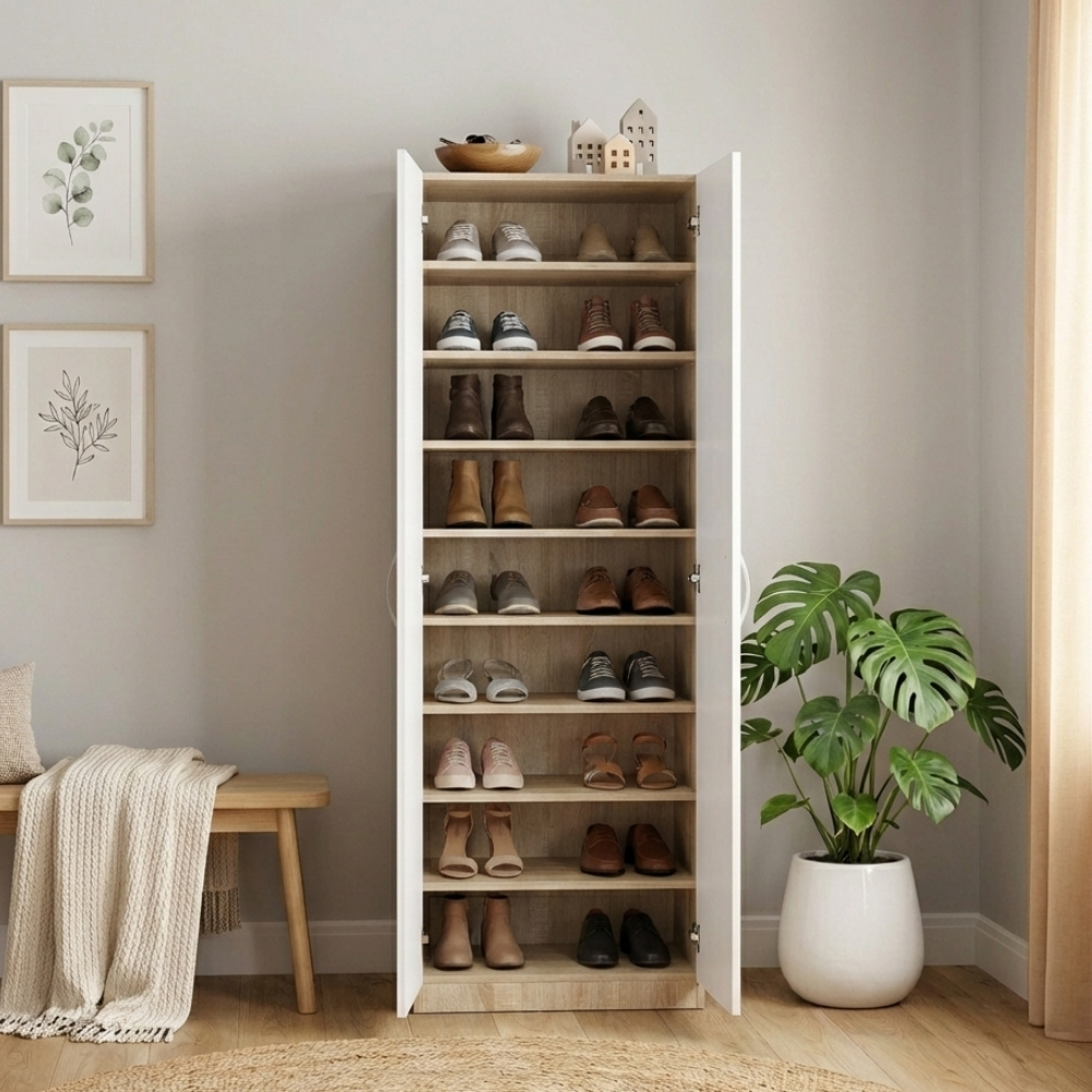 ENYA 2 Door Shoe Cabinet-Oak+White