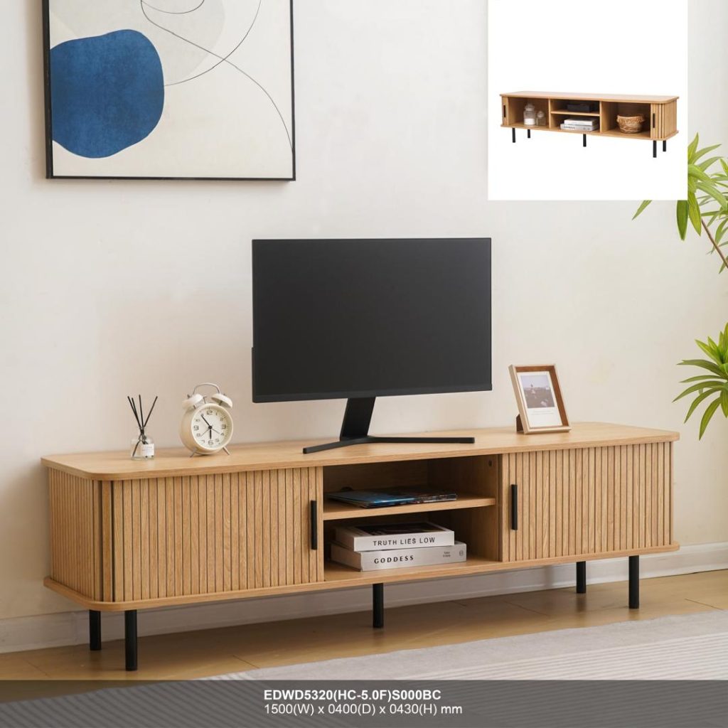 - EVALIS 150cm Sliding Door TV Cabinet-Oak
