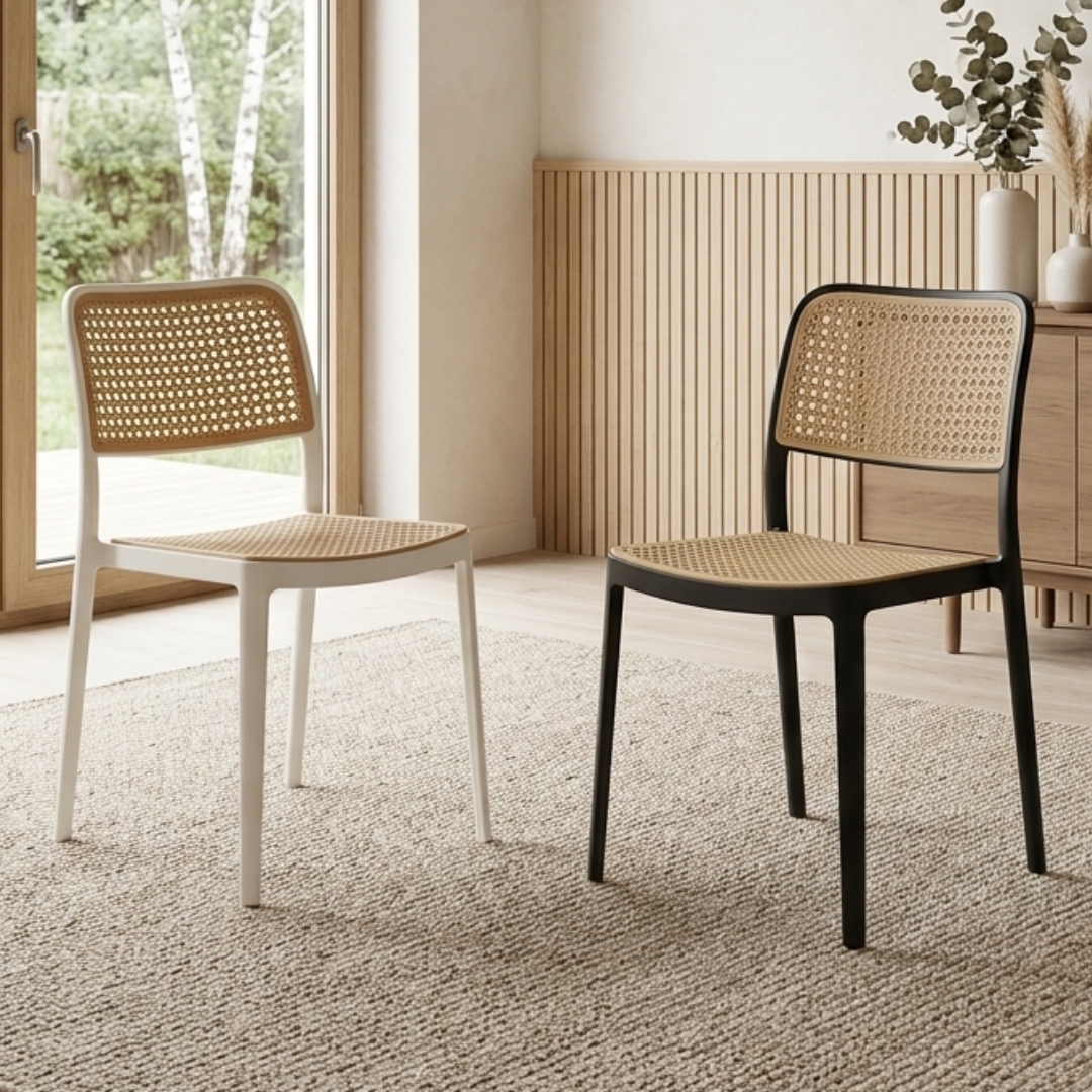 - FION Rattan looks designer plastic chair-Black