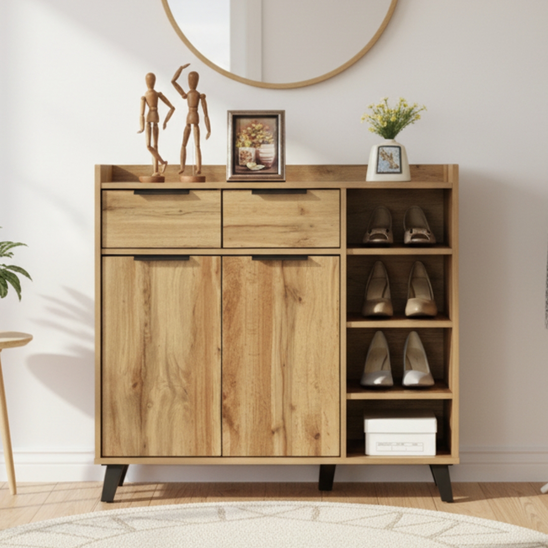 - FLEXI 100cm 2 Door 2 Drawer Shoe Cabinet-Wotan Oak