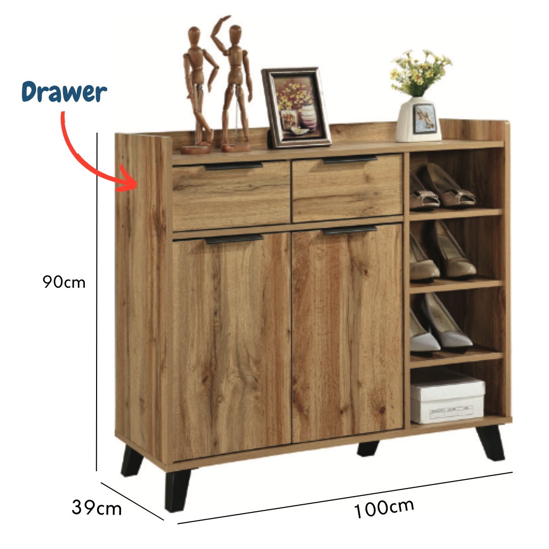 FLEXI 100cm 2 Door 2 Drawer Shoe Cabinet-Wotan Oak