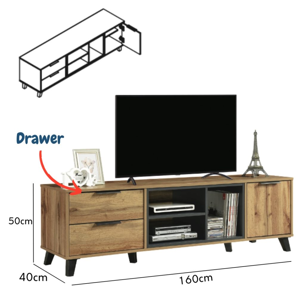 LEENA 4 Feet 2 Drawers TV Cabinet-Wenge