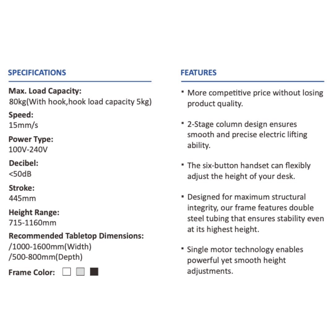 - Electric power lifting mechanism with 2 Years Warranty