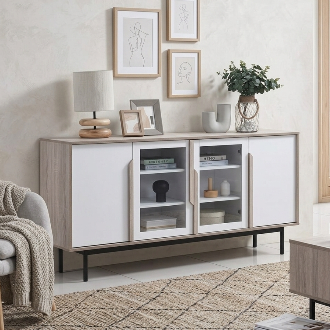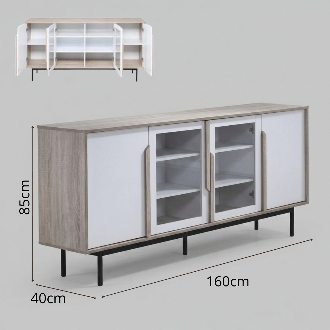- FORZA 160cm 4 Door Sideboard-Oak+White