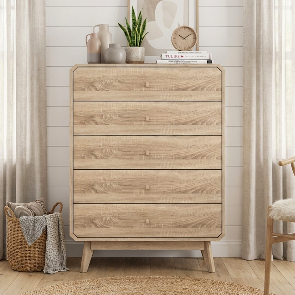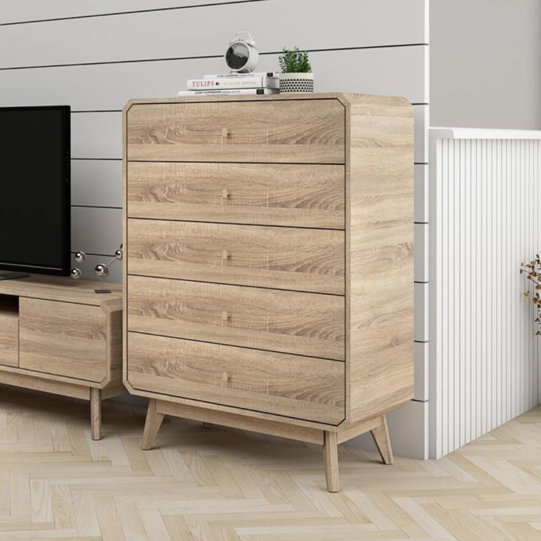 - GALINA 5 Drawers Chest-Oak