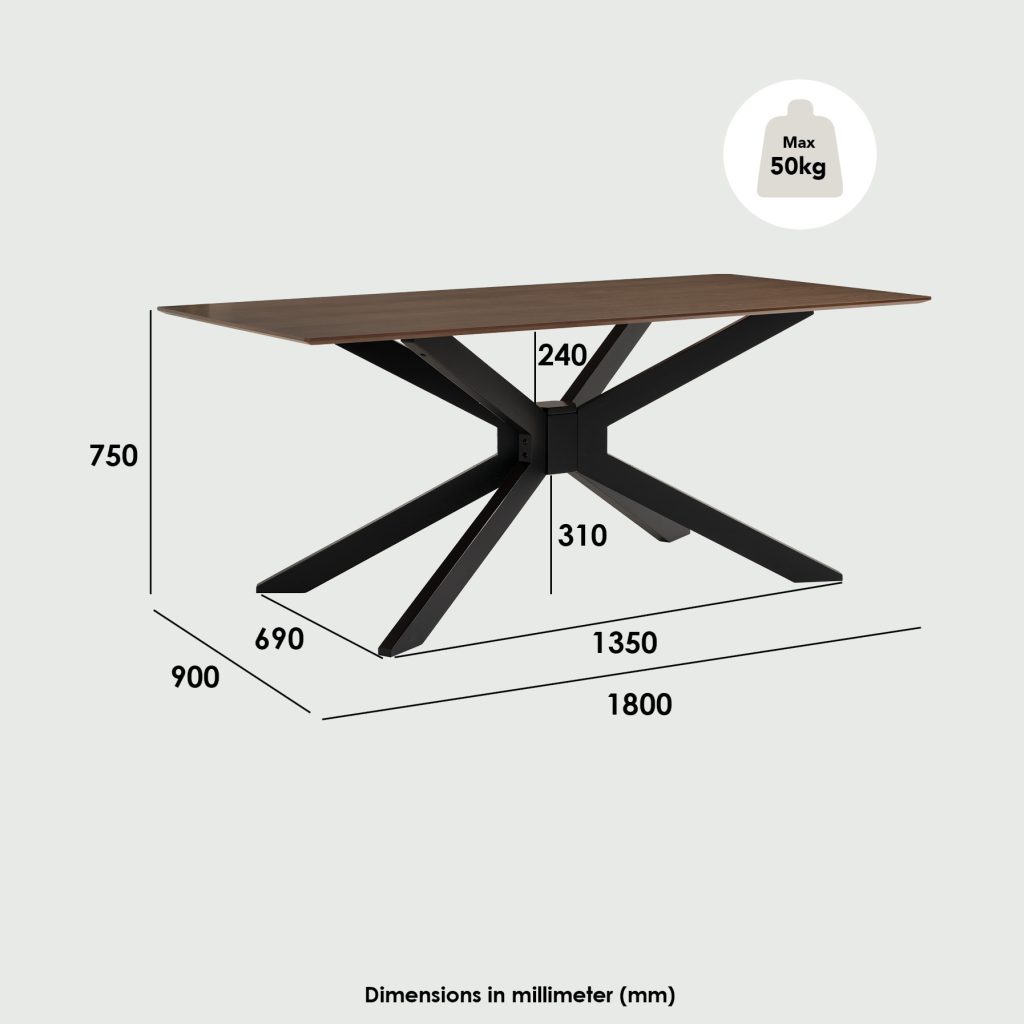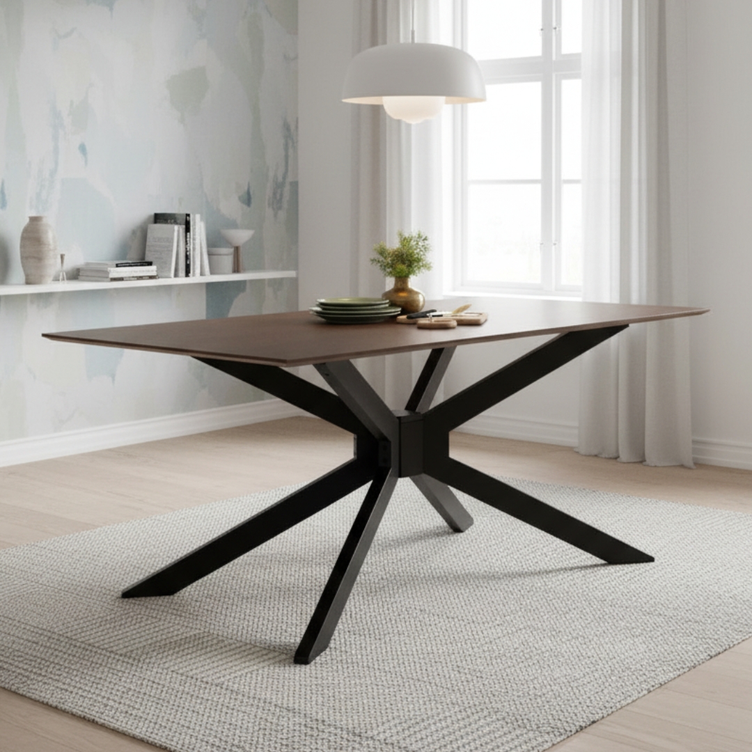 - Gerald dining table leg in Black colour, Cocoa colour top