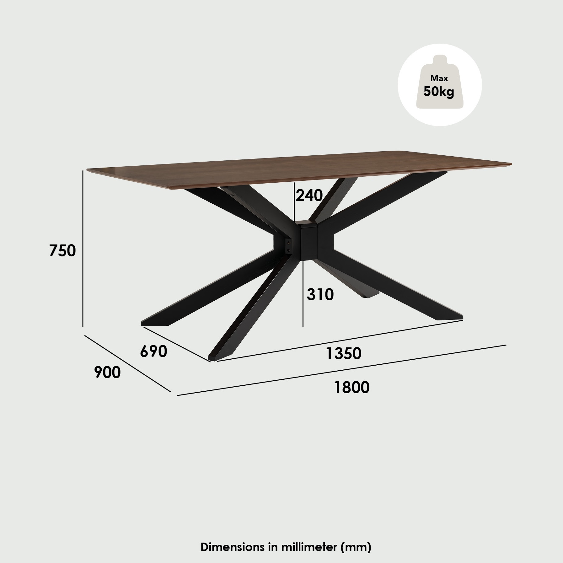 Dimension (mm): H750xW1800xD900