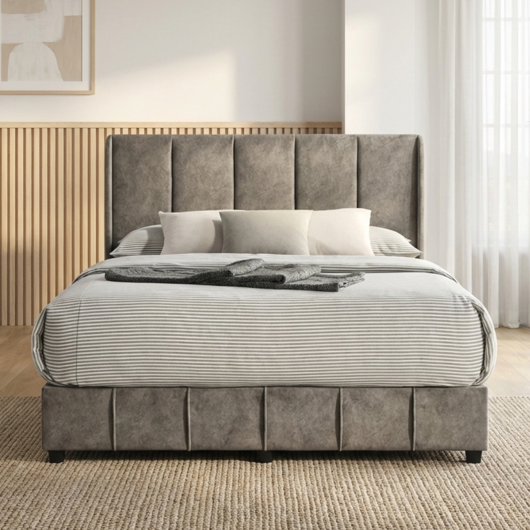 - GIANNI Queen & King Size Wing Back Bed Frame-Brown