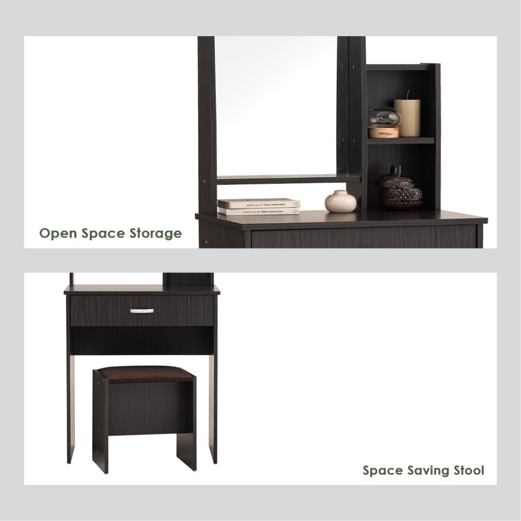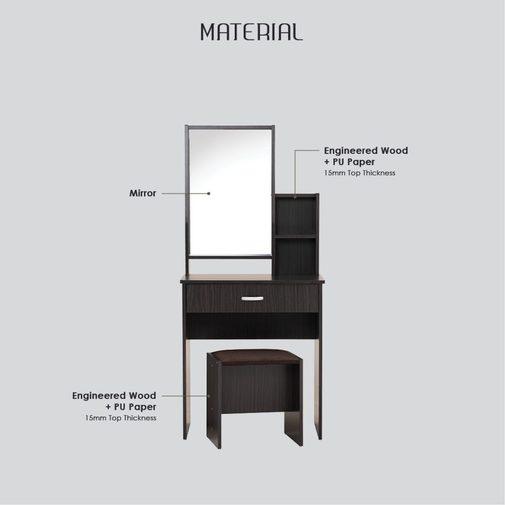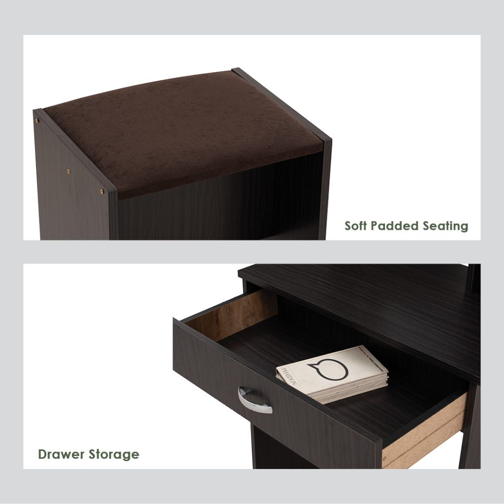 - KEARNY dressing table with mirror and cushion stool- Capuccino