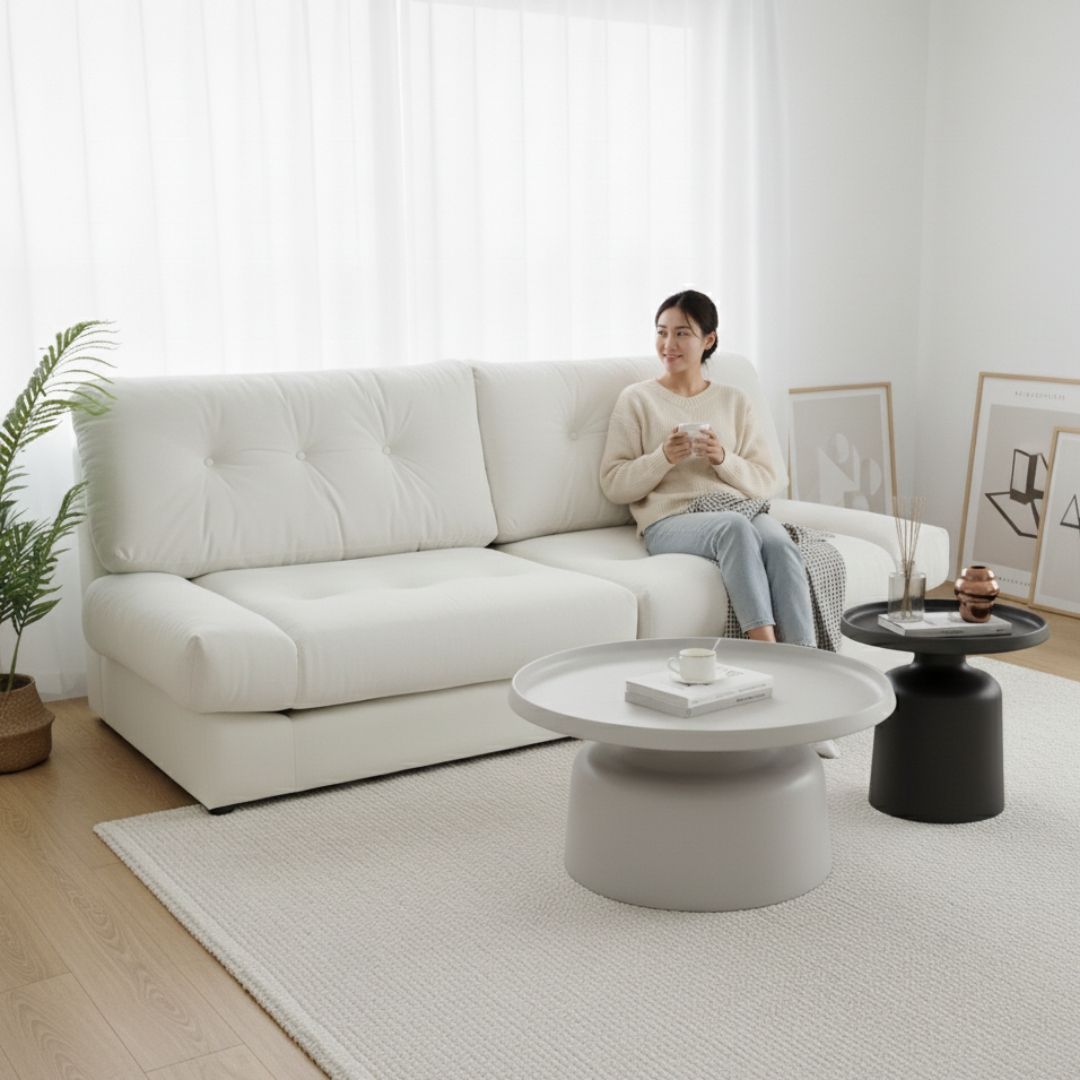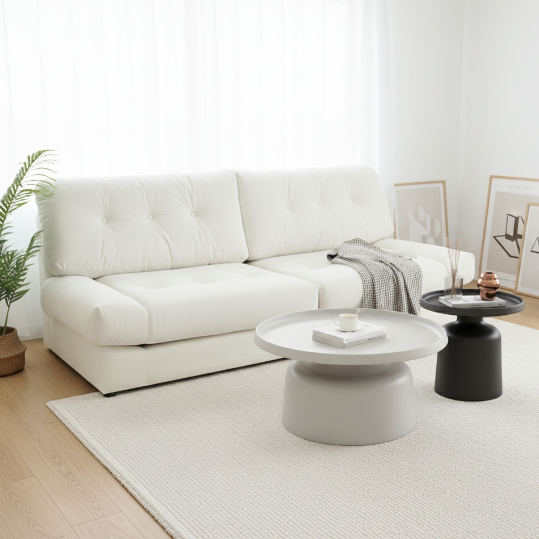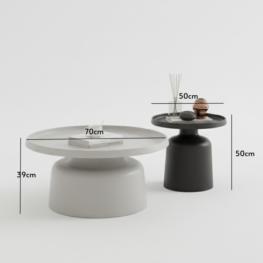 HASEENA 套叠茶几套装,采用碳素钢材质,坚固耐用。套装包含 1 张大茶几 + 1 张小边几,可单独使用,也能自由组合,灵活适配不同空间。简约设计与金属质感,为客厅增添现代时尚气息。